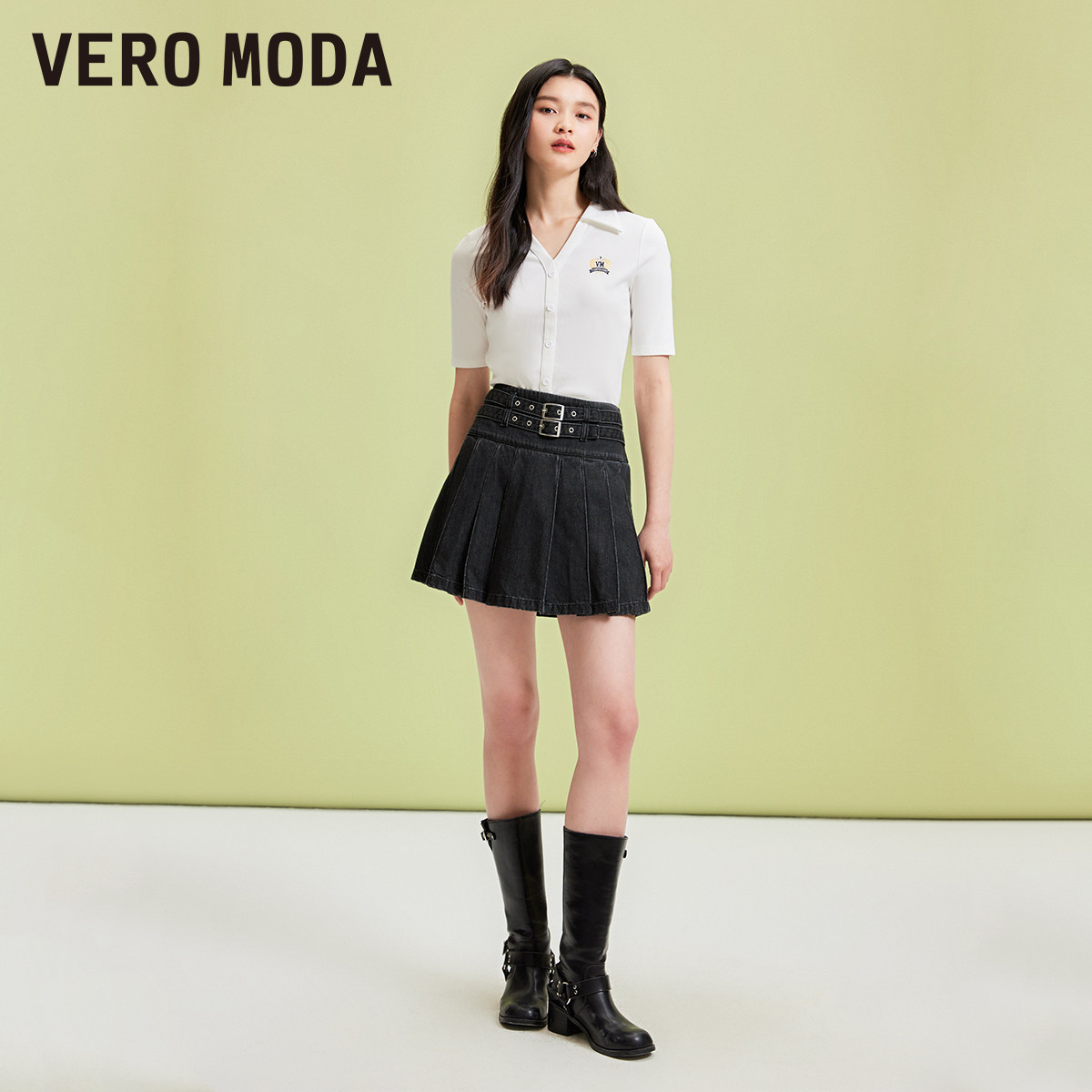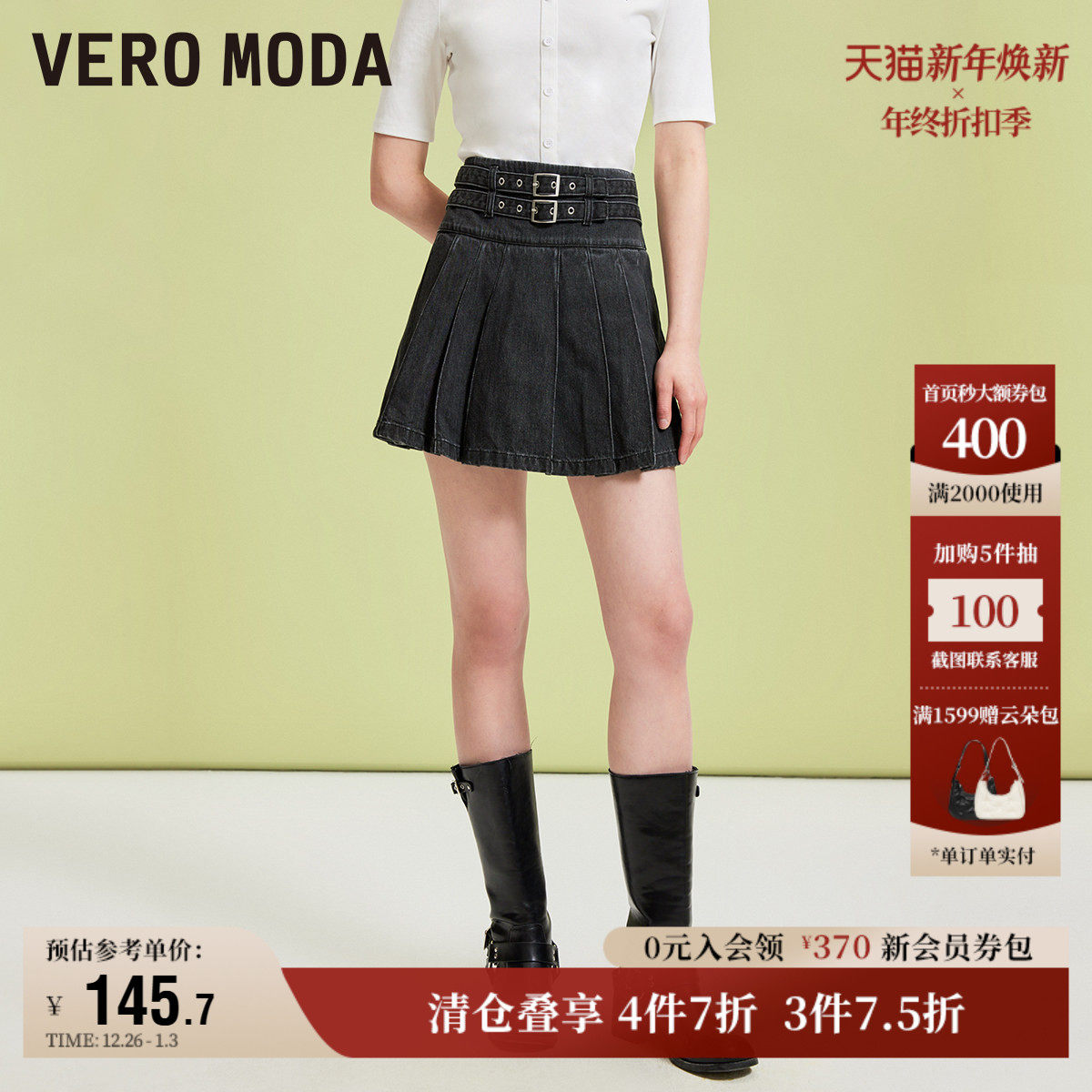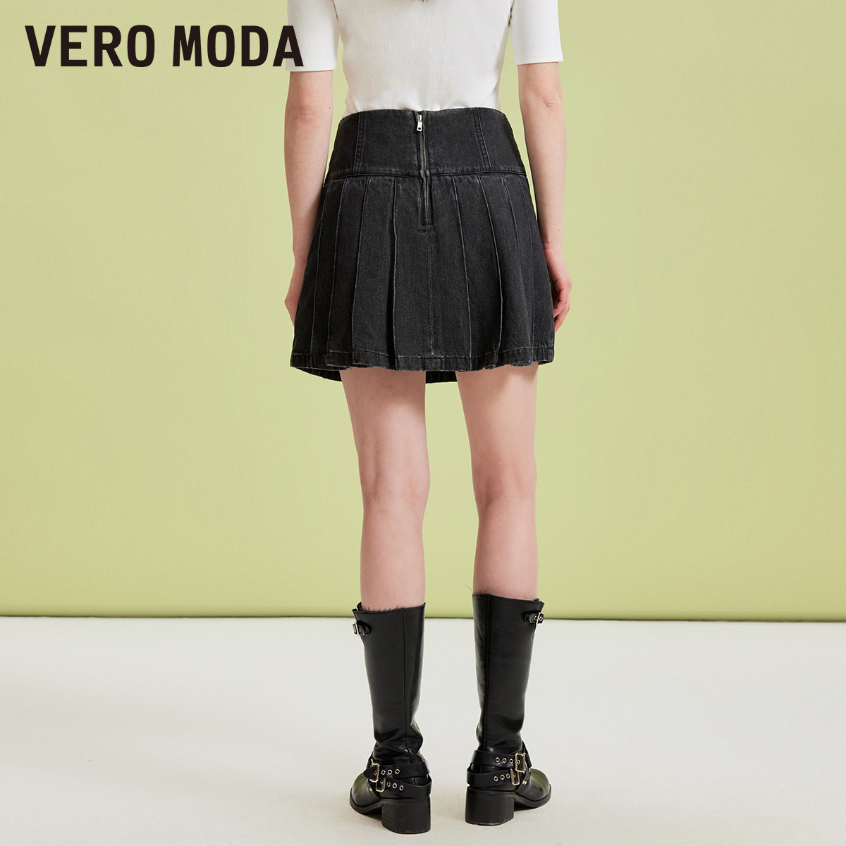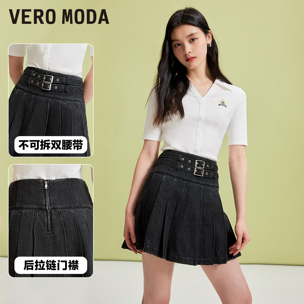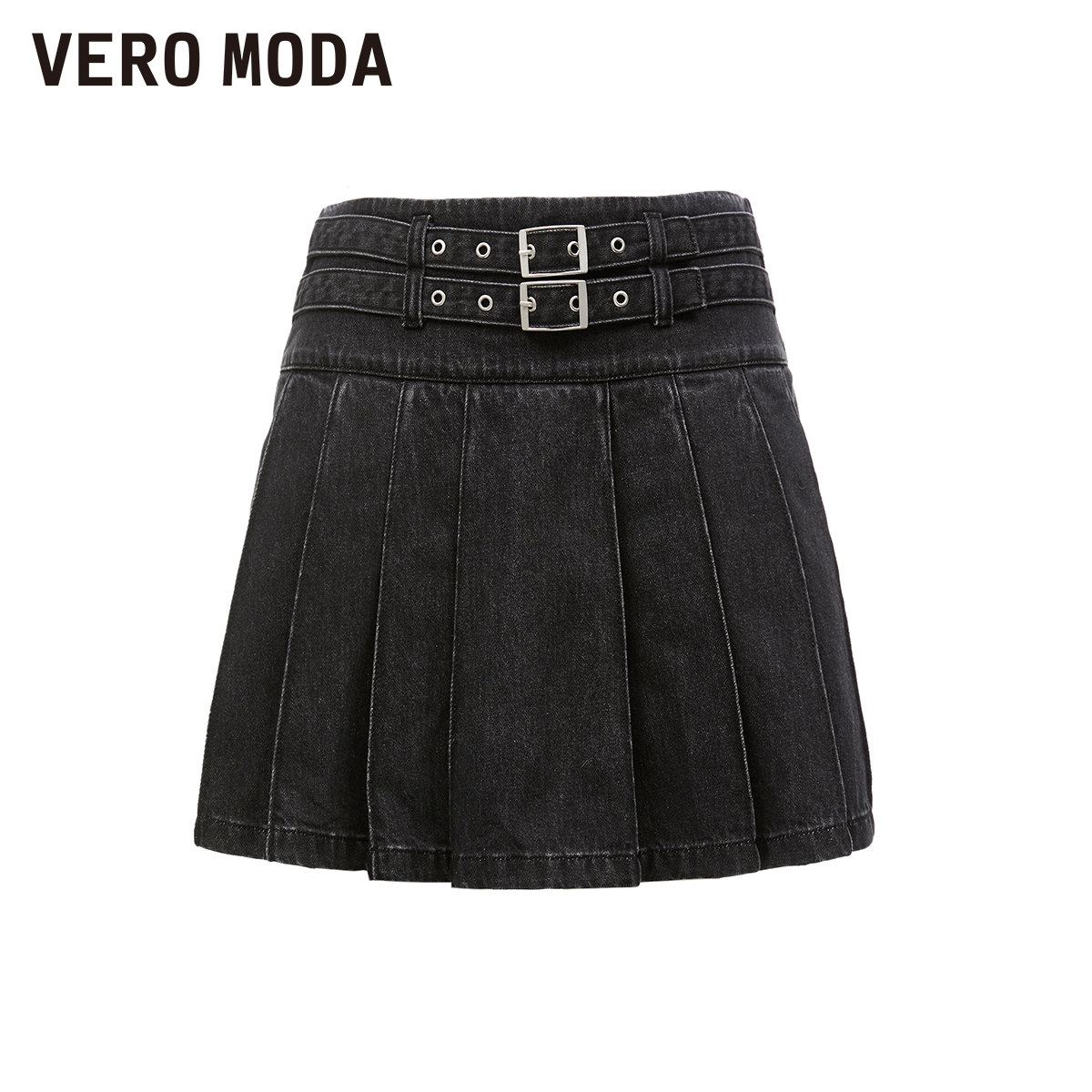 Vero Moda奥莱半身裙秋季新款学院风牛仔腰带高腰少女百褶裙流行