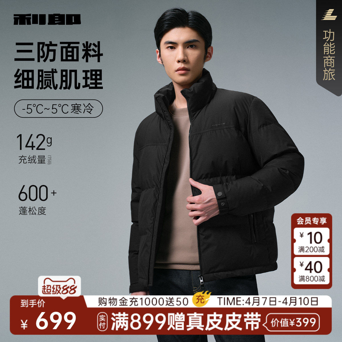 【三防】利郎官方立领羽绒服男士冬季加厚款商务男装短款外套