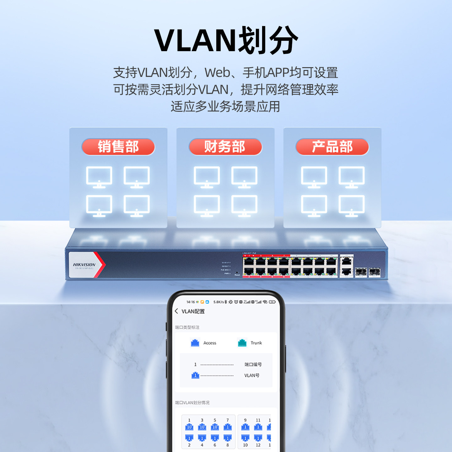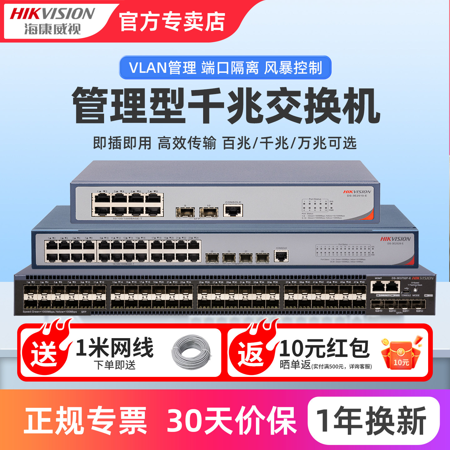 海康威视网管型交换机万兆/千兆传输VLAN配置12光纤口12电口可管理监控设备专用8口16口24口48口52口可选