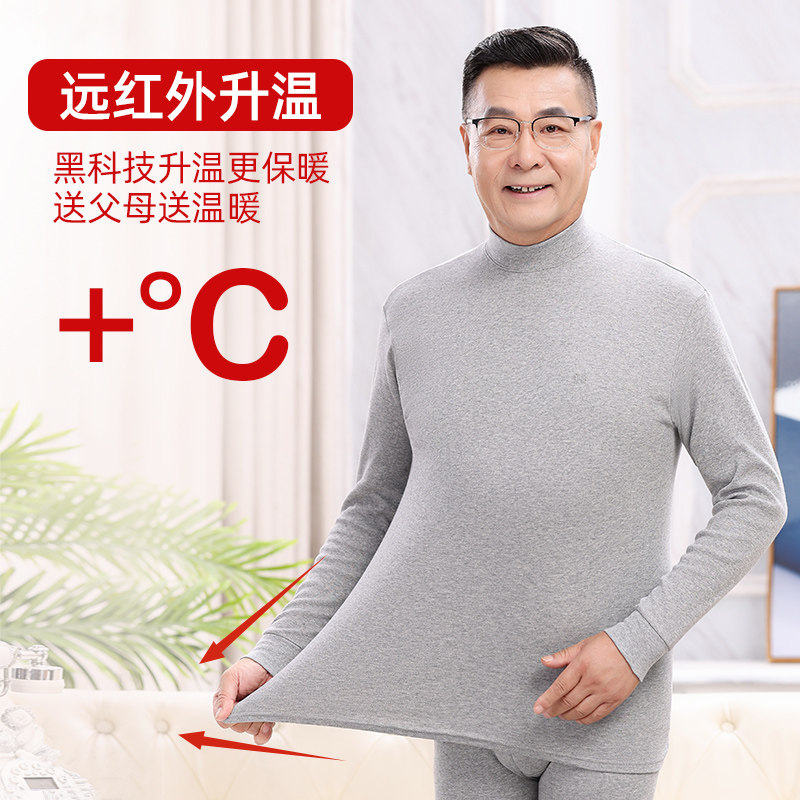 七匹狼男士保暖内衣套装纯棉毛衫春秋青年圆领薄款防寒秋衣秋裤男