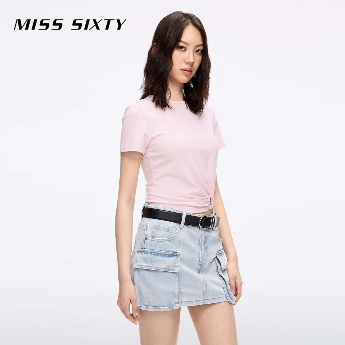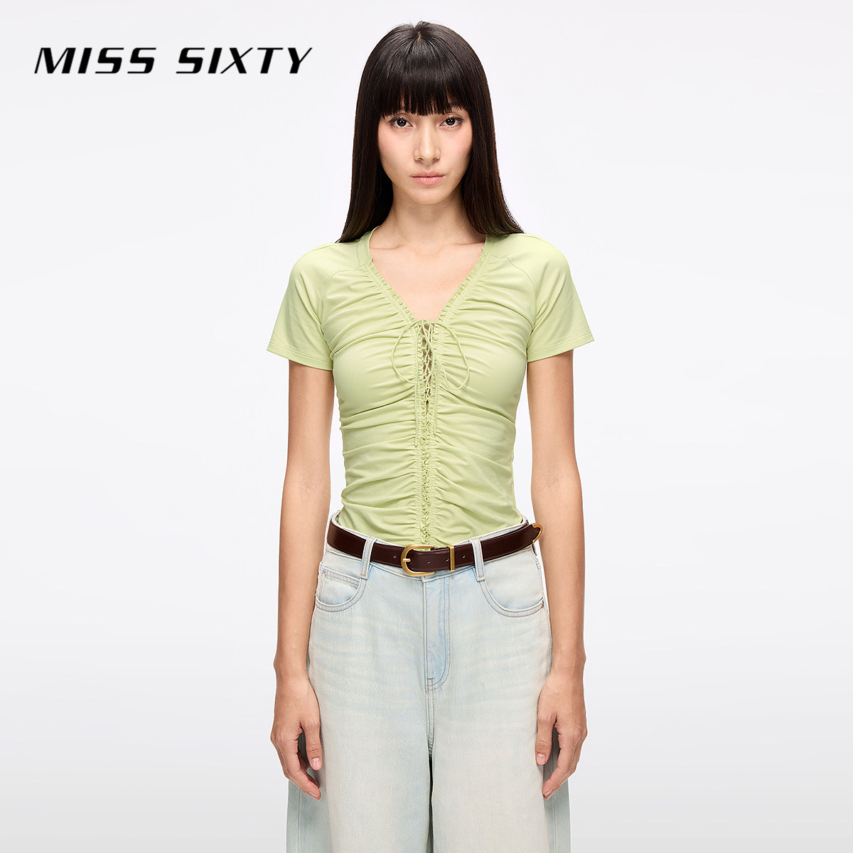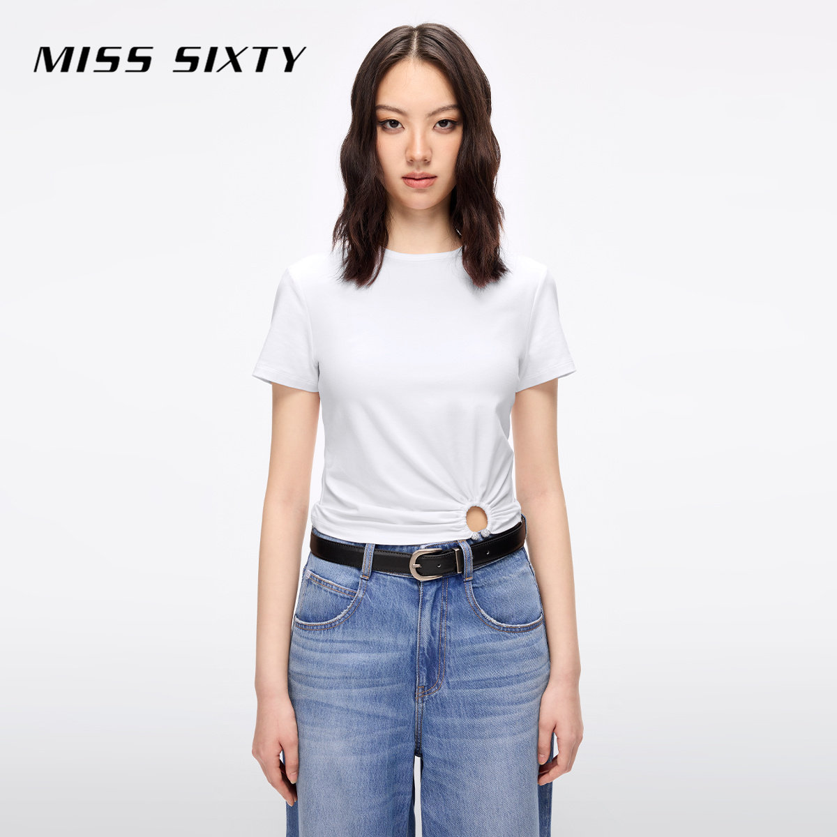 [修身]Miss Sixty2025夏季新款系带镂空短袖T恤短款设计感上衣