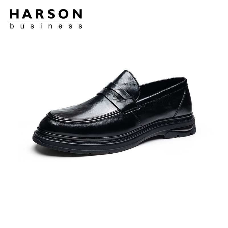 哈森男鞋商务休闲皮鞋男英伦真皮豆豆鞋男一脚蹬懒人鞋商场同款鞋