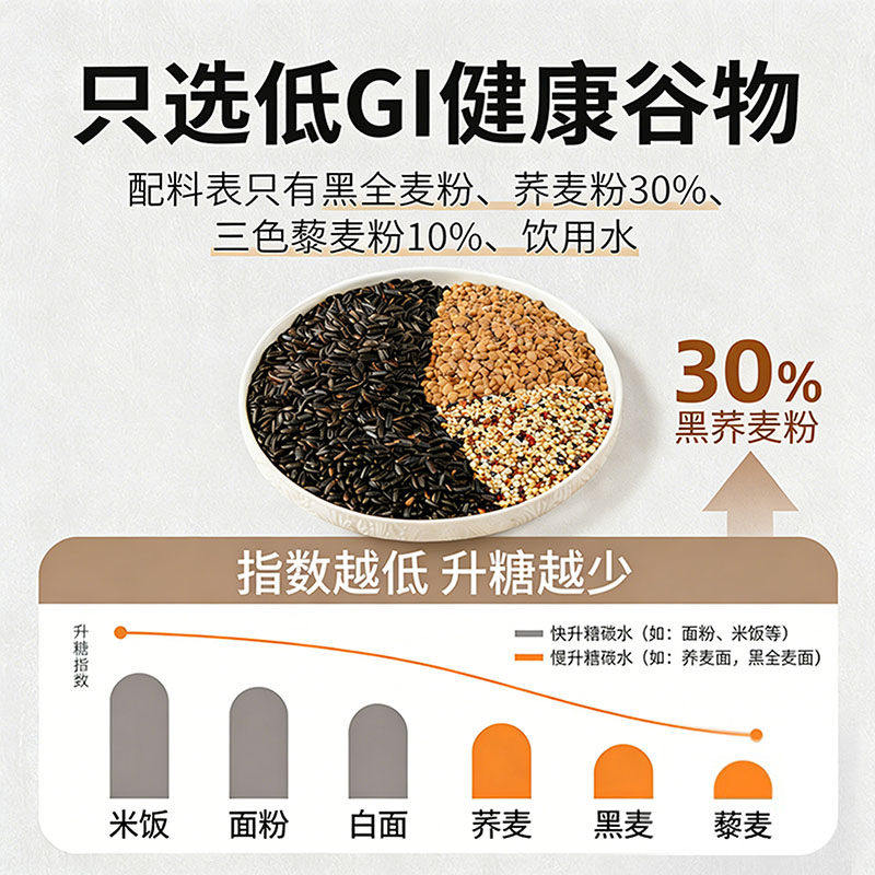 荞麦刀削面无糖精0脂肪苦荞面条挂面全麦纯粗粮减黑麦杂粮专用肥