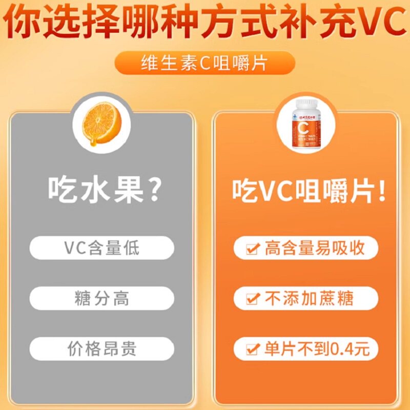 北京同仁堂天然维生素C咀嚼片VC片维C儿童补充维生素正品旗舰店