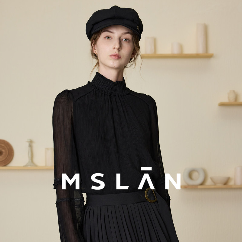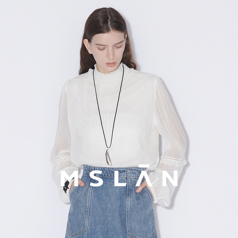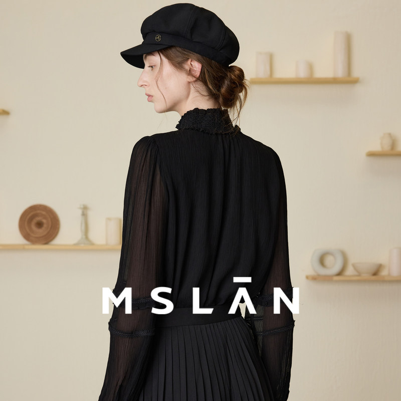 【不易静电】MSLAN秋季春季套头荷叶边雪纺衫上衣MEAE1501