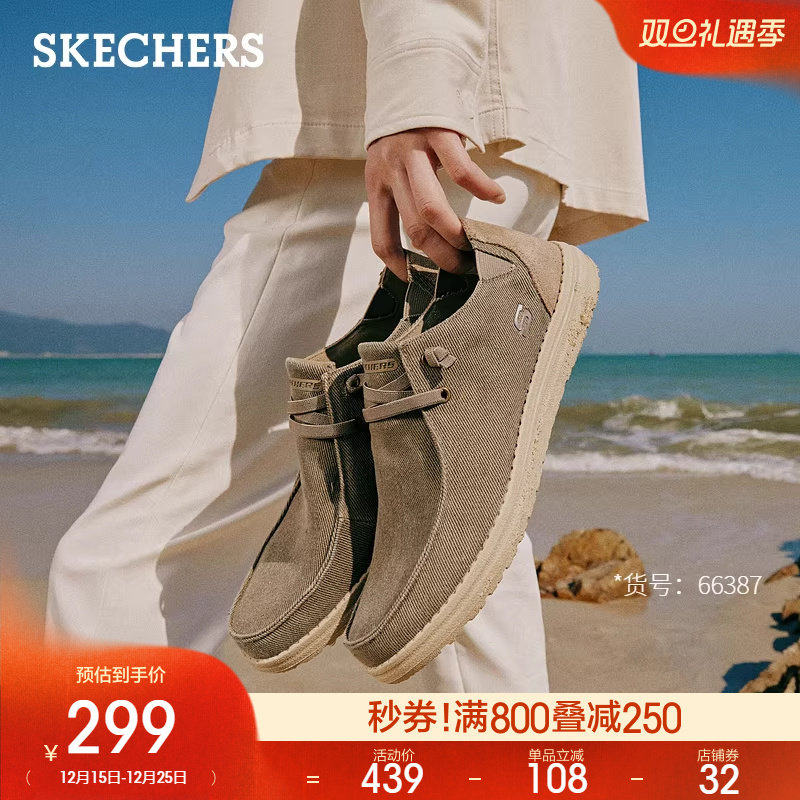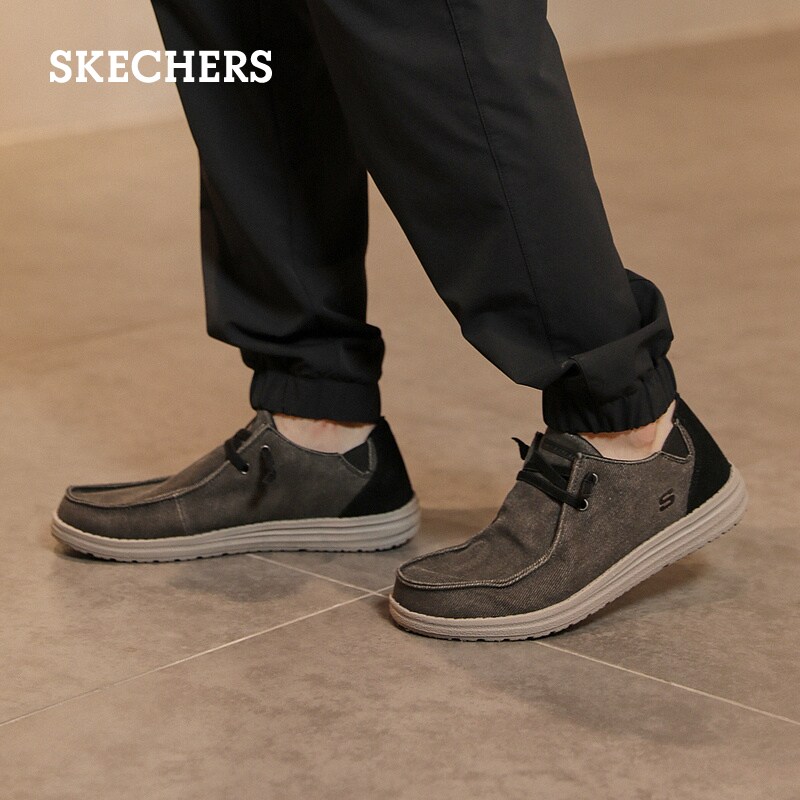 Skechers斯凯奇男鞋秋冬一脚蹬乐福鞋帆布鞋厚底低帮休闲商务鞋