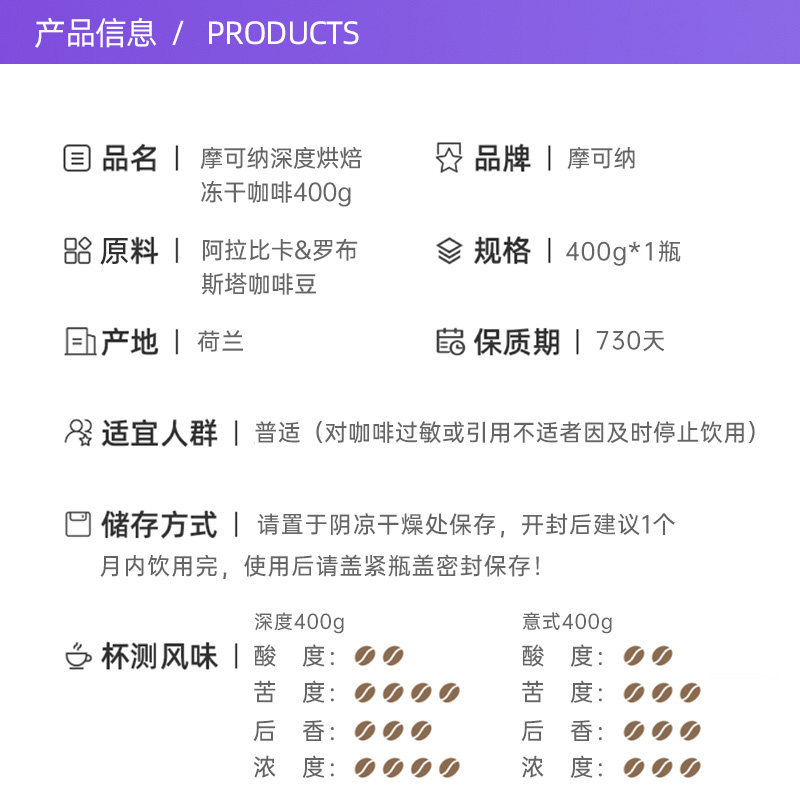 【自营】荷兰进口摩可纳8号深度冻干咖啡无糖速溶黑咖啡粉400克