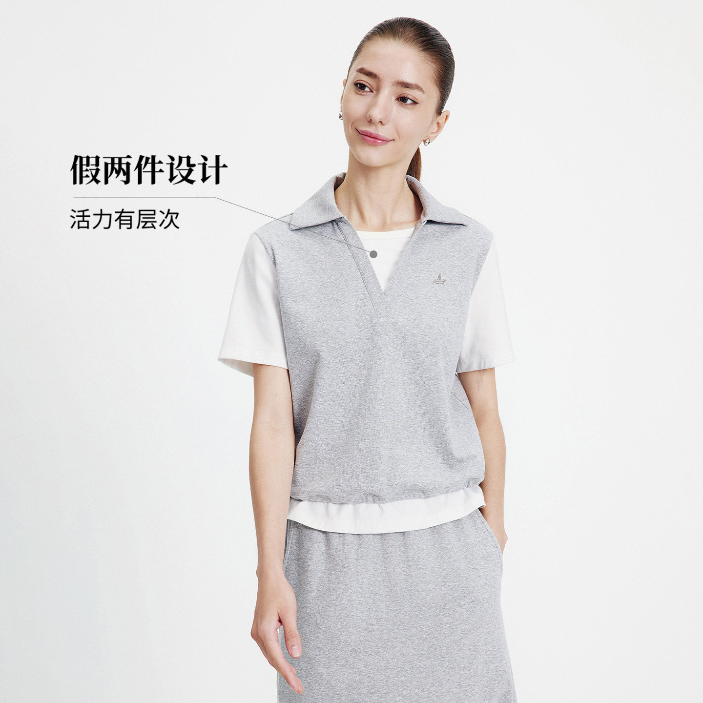 森马POLO衫女夏季短款褶皱紧身正肩凉感上衣2026新款百搭气质衣服