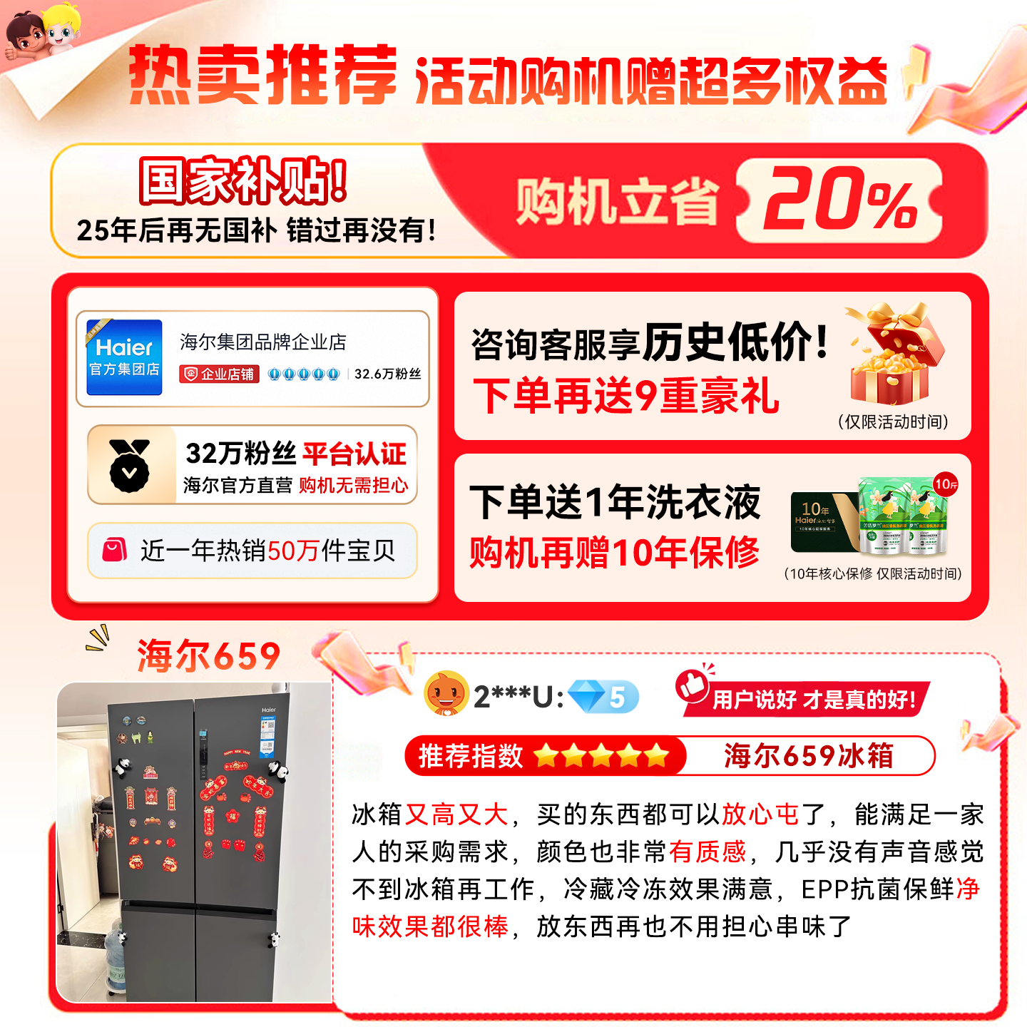 政府补贴超薄零嵌海尔统帅悦己懒人520十字对开四门大容量电冰箱
