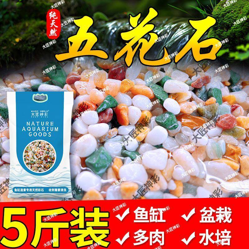 家居鱼缸造景五彩石鱼类用品装饰底砂天然彩色石子盆栽水培花盆垫