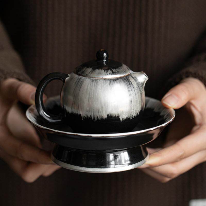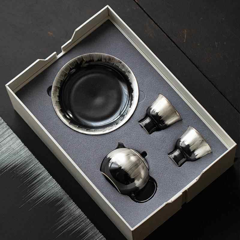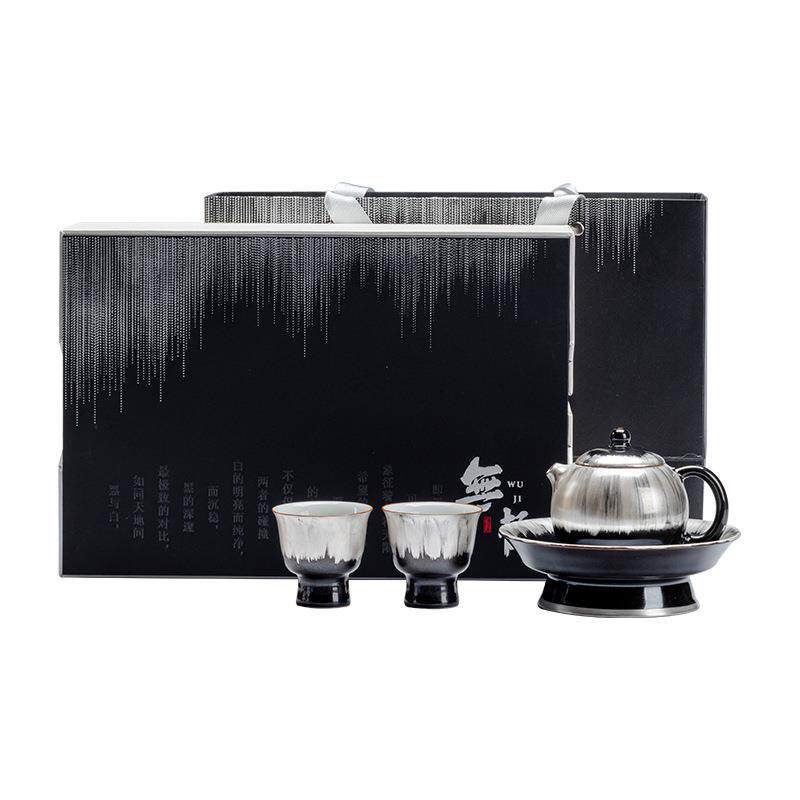 乌金釉功夫茶具套装高档鎏银茶壶茶杯送长辈领导男士礼盒套装