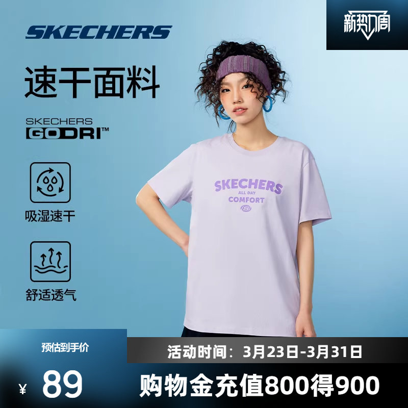 斯凯奇短袖情侣款男女速干运动T恤衫美式圆领上衣时尚潮流休闲风