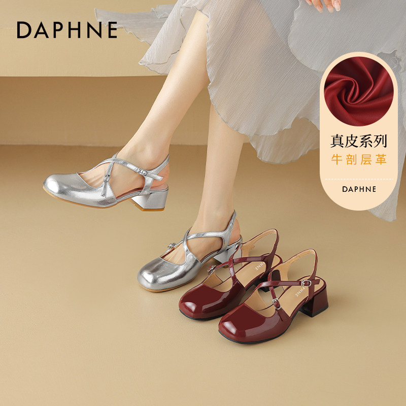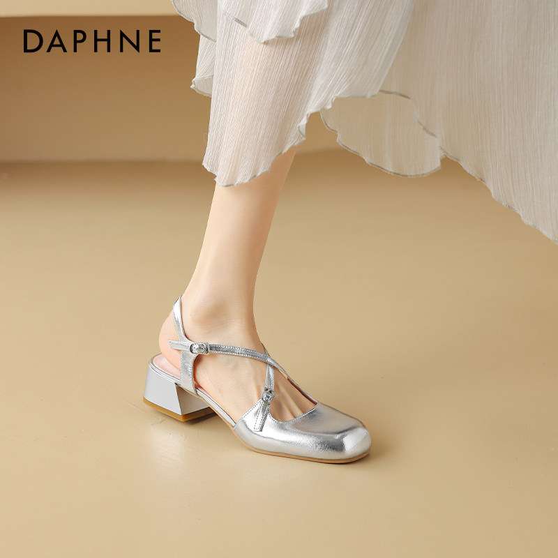 达芙妮包头凉鞋女款2026新款玛丽珍女鞋夏季外穿银色高跟鞋