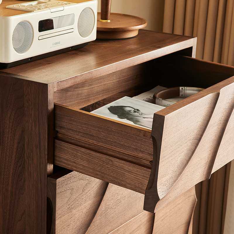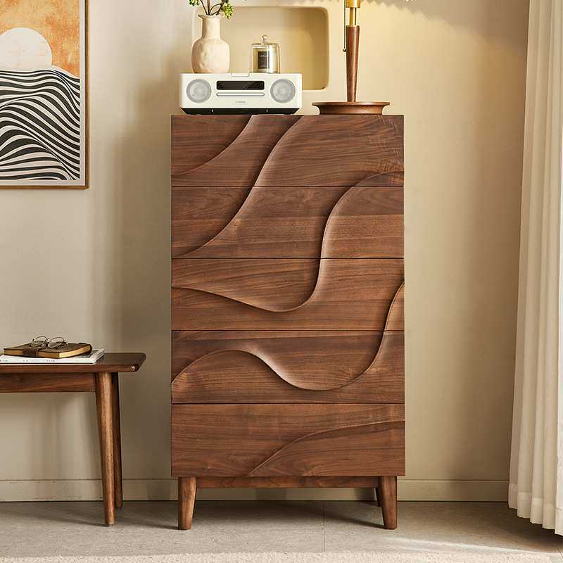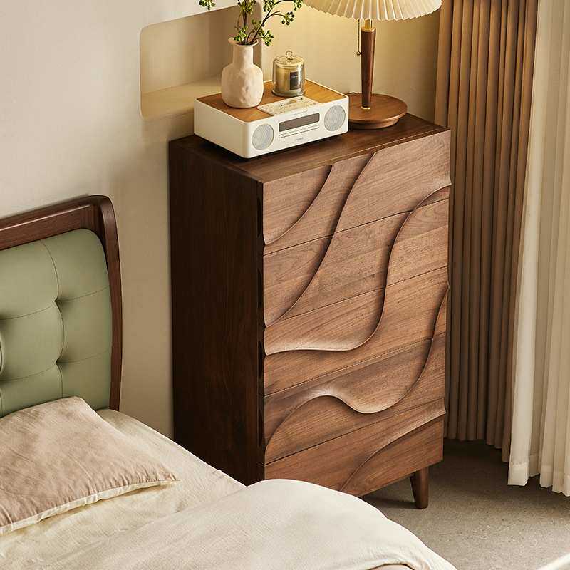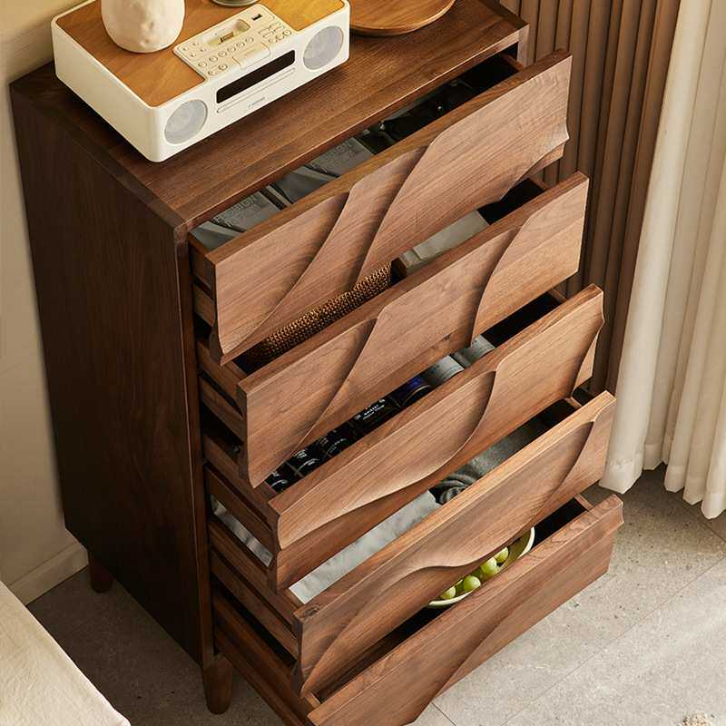 yamoo北美黑胡桃木五斗柜北欧简约实木储物柜家用卧室波浪五斗橱