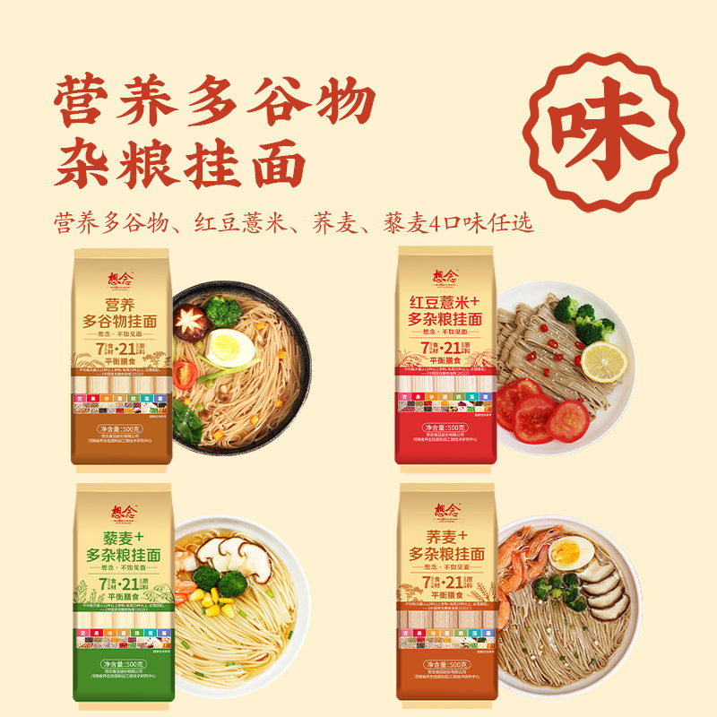 想念多谷物杂粮挂面藜麦 红豆薏米 荞麦 低脂低钠粗粮营养汤面