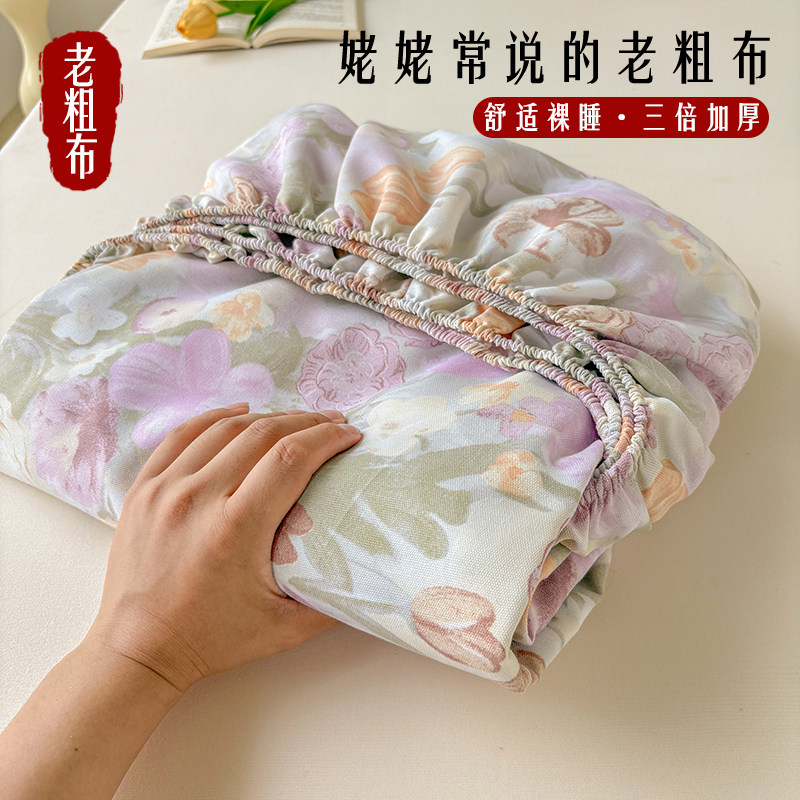 老粗布床笠加厚原棉三件套床垫保护罩防尘罩全棉防滑床单单件床罩