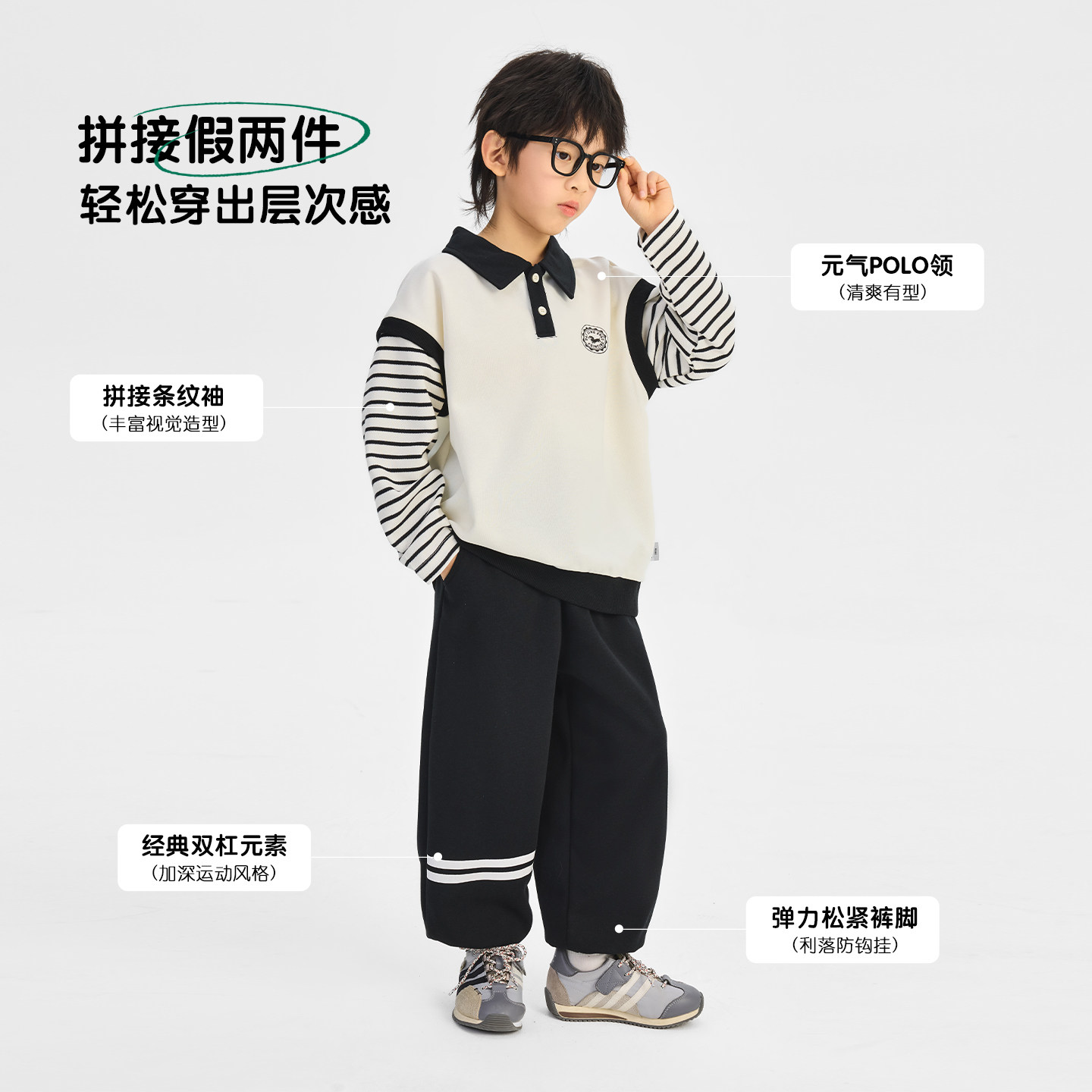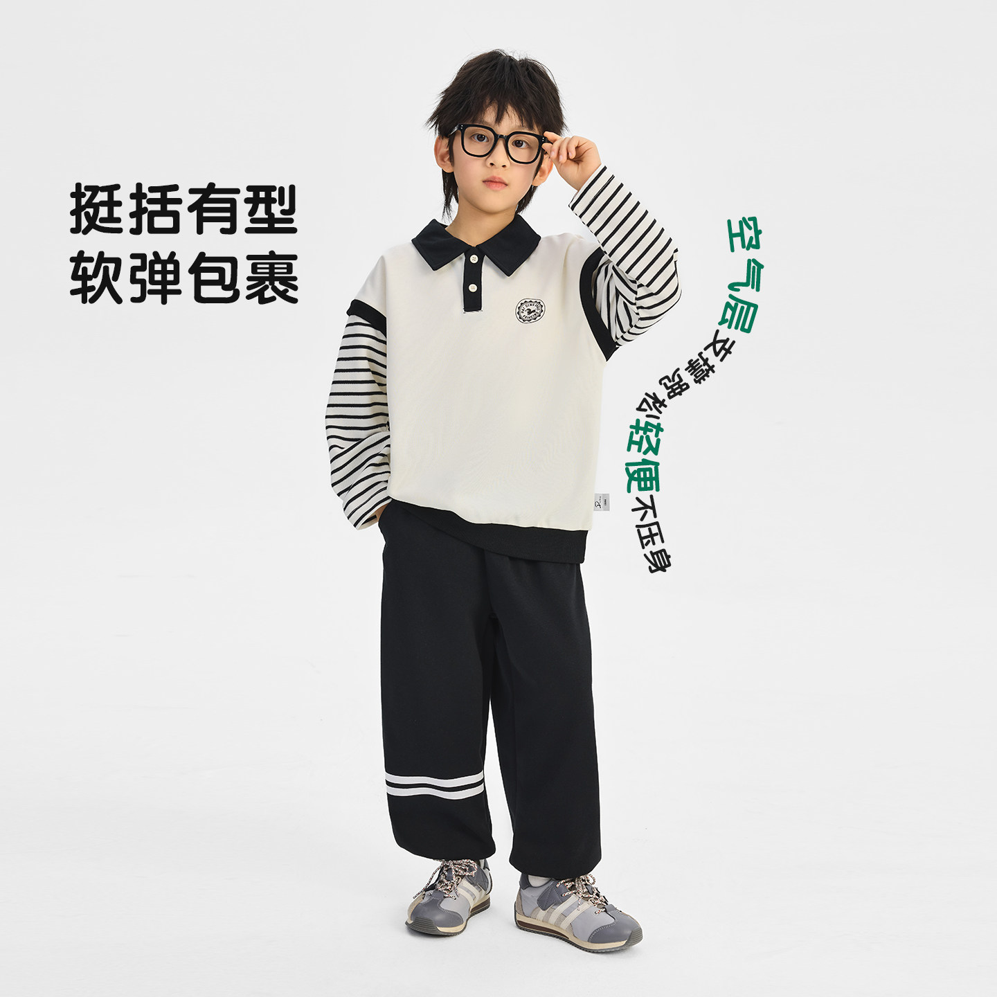 派町童装男童套装2026春季新款大童学院风两件套儿童针织上衣裤子