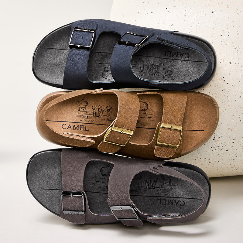 骆驼男士凉鞋2026新款夏季透气舒适休闲真皮牛皮革勃肯鞋沙滩鞋子