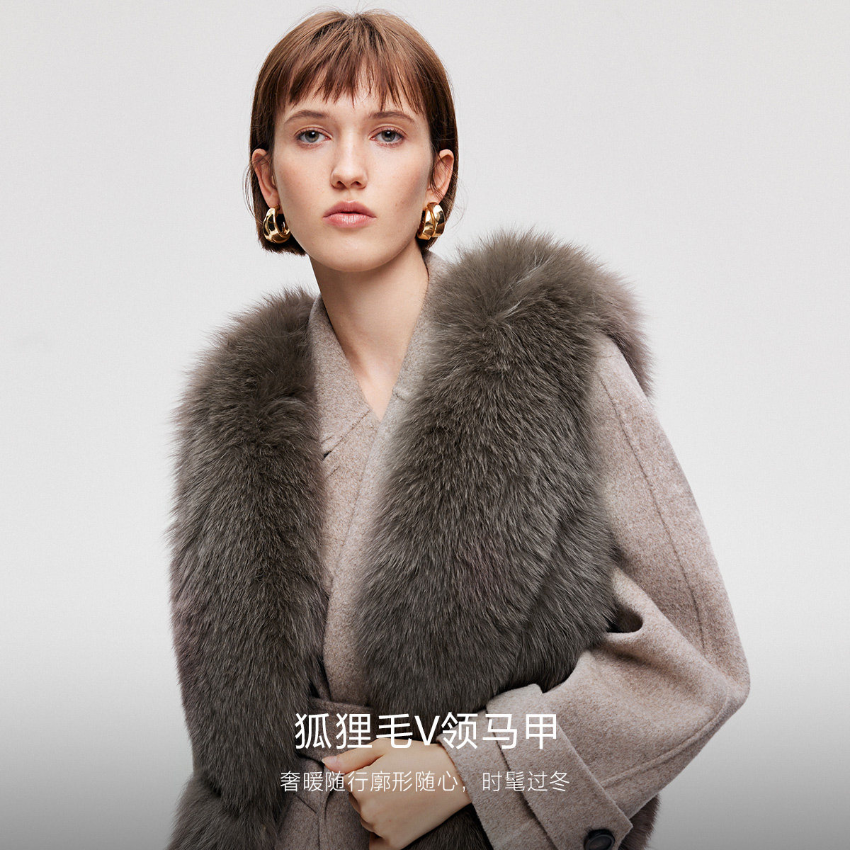 狐狸真毛马甲,天鹅颈V字领口