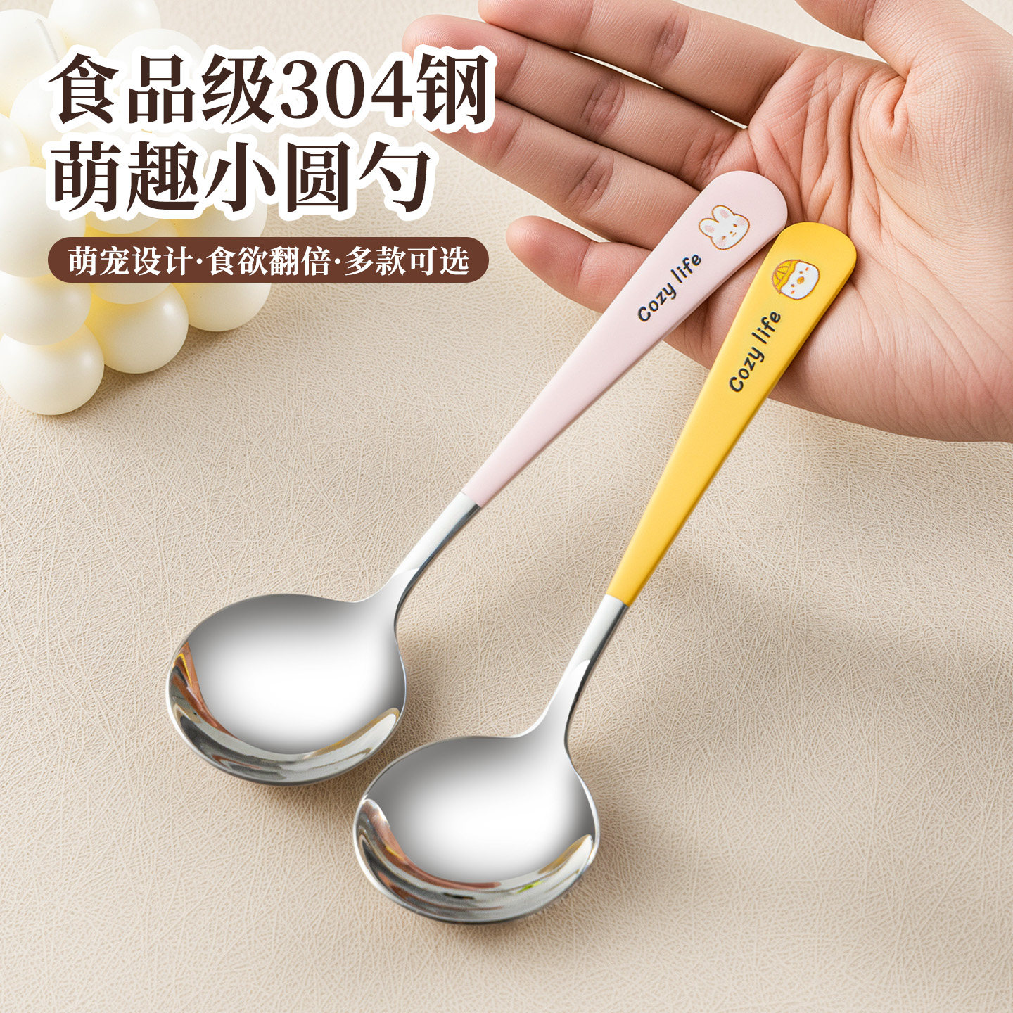 食品级不锈钢儿童吃饭专用勺子个人专用女生可爱高颜值304小勺