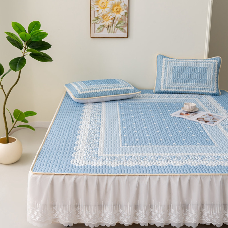 高档欧式乳胶凉席床裙款三件套可机洗冰丝软席可拆卸加厚蕾丝床罩