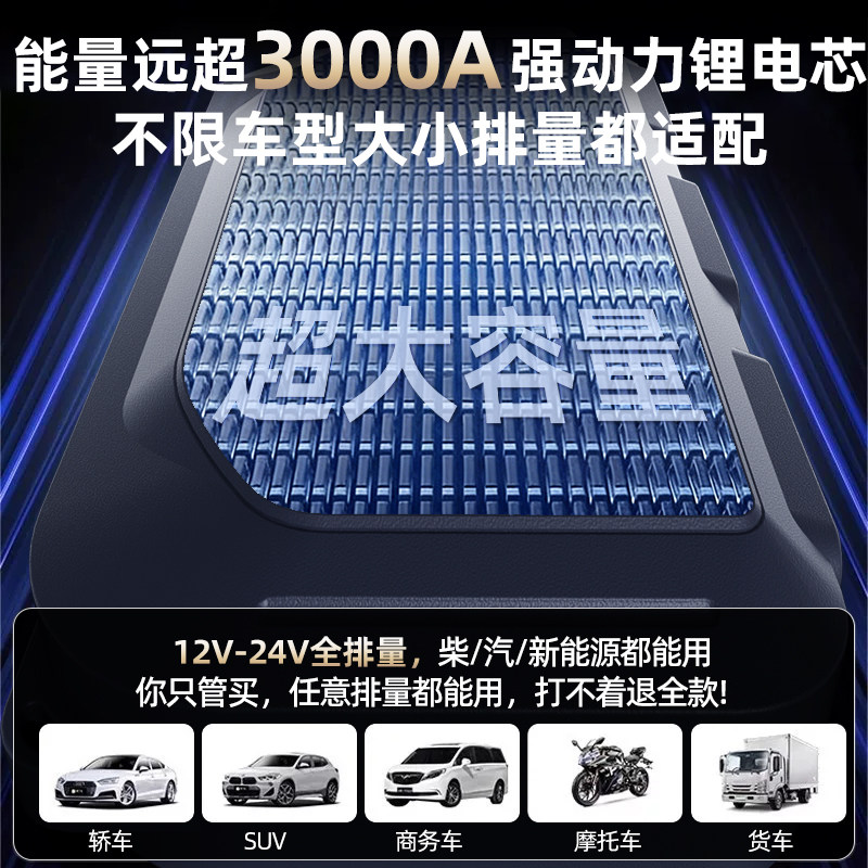 汽车应急启动电源12v24v车载电瓶搭电宝大容量强起大货车打火神器