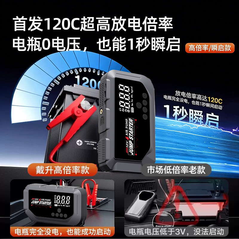小能人汽车应急启动电源充气泵一体机车载打气电瓶紧急搭电宝神器