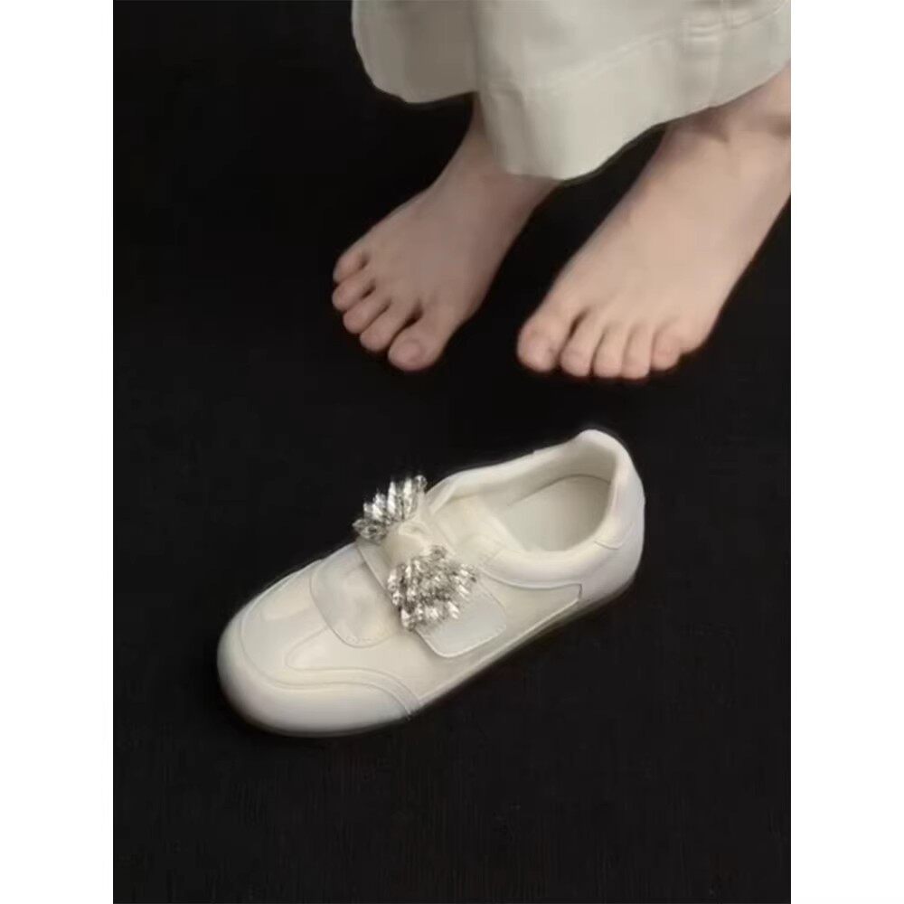 水钻魔术贴厚底休闲鞋女2026春秋季新款舒适百搭增高小白鞋运动鞋
