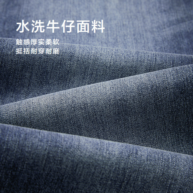 吉普专柜秋冬季新款复古牛仔裤男宽松直筒大码加绒加厚水洗长裤子