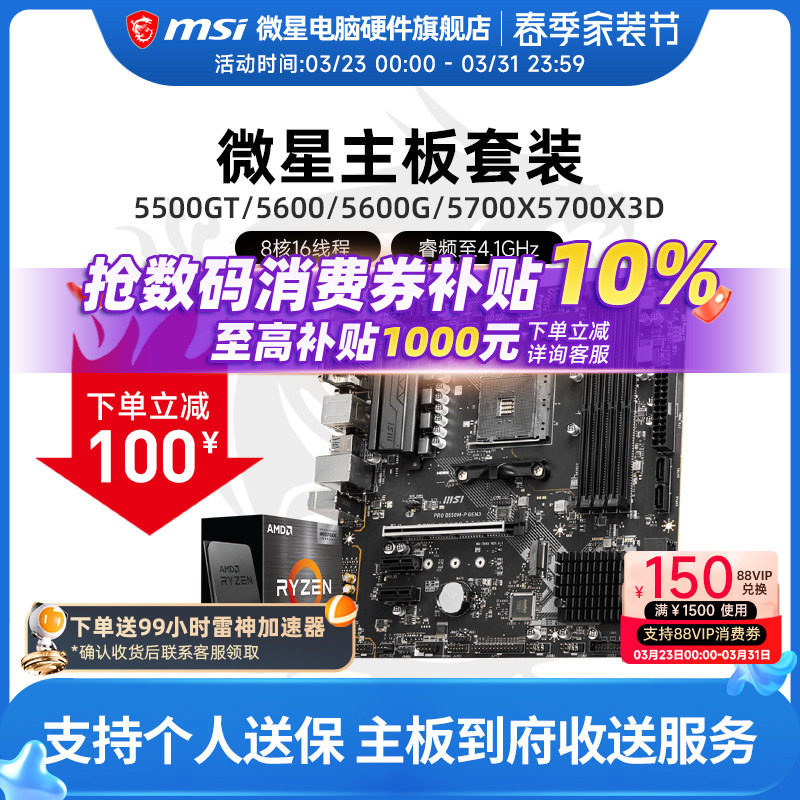 AMD 5600 5700X 5500X3D 微星 B450 B550 主板CPU电脑主机套装