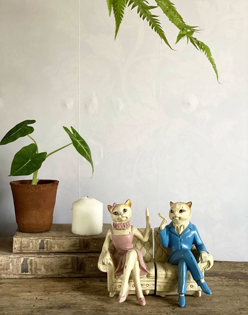 美式乡村风格复古做旧树脂绅士淑女猫书挡书立书靠一对出不拆卖