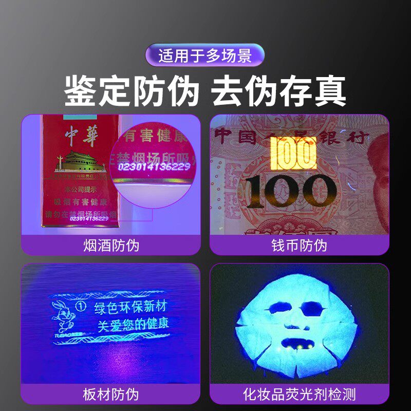 uv365紫光灯鉴定烟酒专用玉石鉴定翡翠鉴别验钞灯板材蓝光防伪手