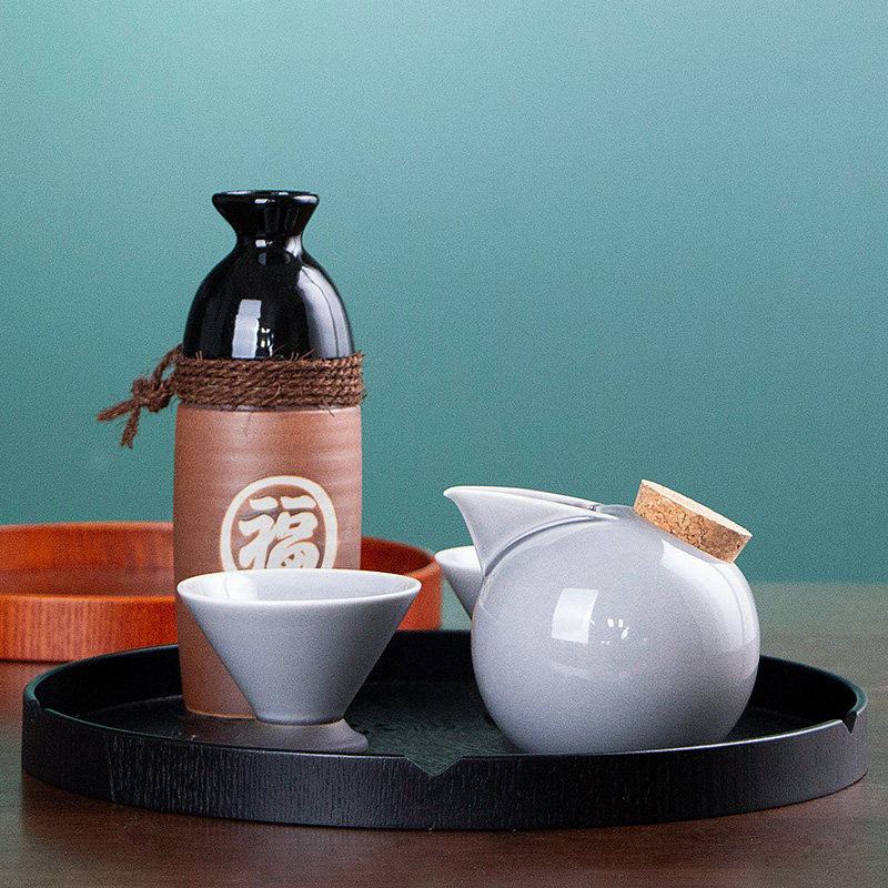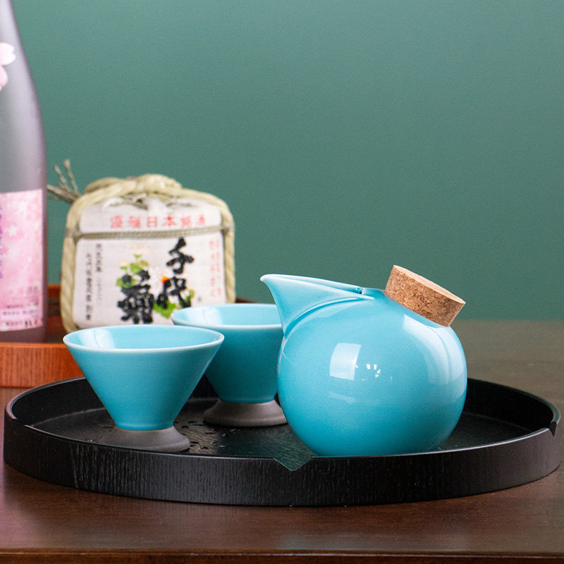 美浓烧 日本进口绿釉家用陶瓷日式清酒酒具套装釉下彩仿古冷酒器