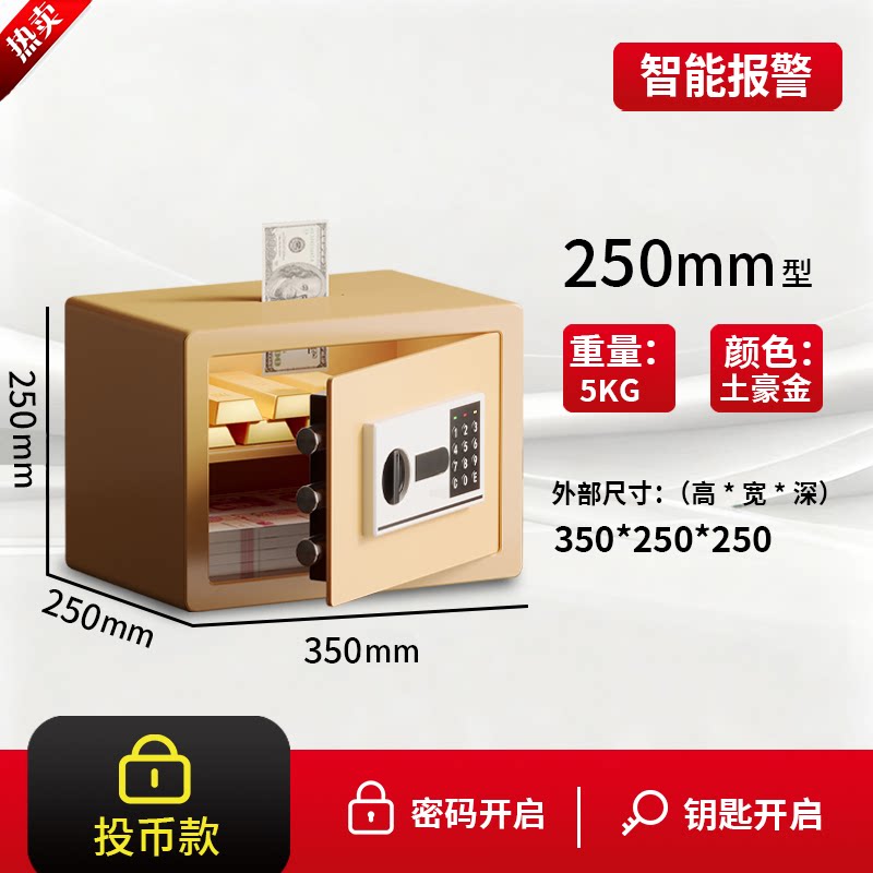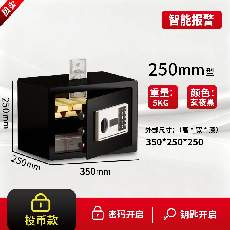 2025新款保险柜家用小型防盗保险箱儿童存钱罐指纹密码钥匙保险箱
