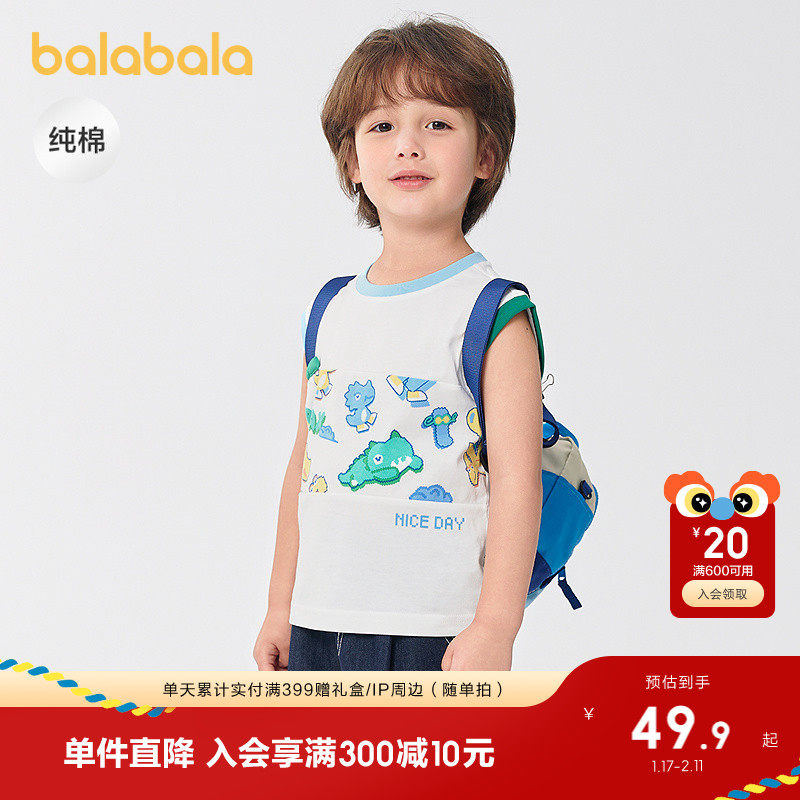 巴拉巴拉童装儿童背心纯棉无袖上衣男童夏装2025新款时尚百搭洋气