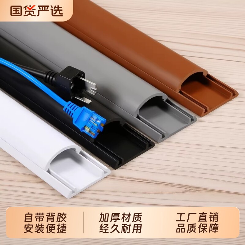 PVC线槽贴地电线槽地面自粘明装家用弧形地线槽防踩装饰条走线槽