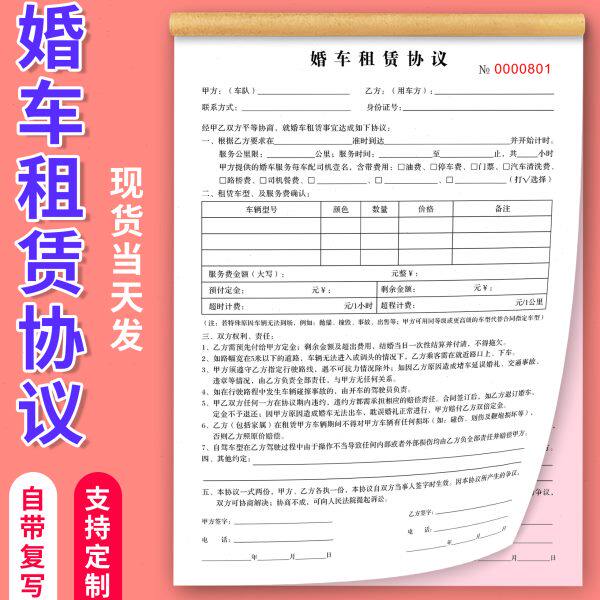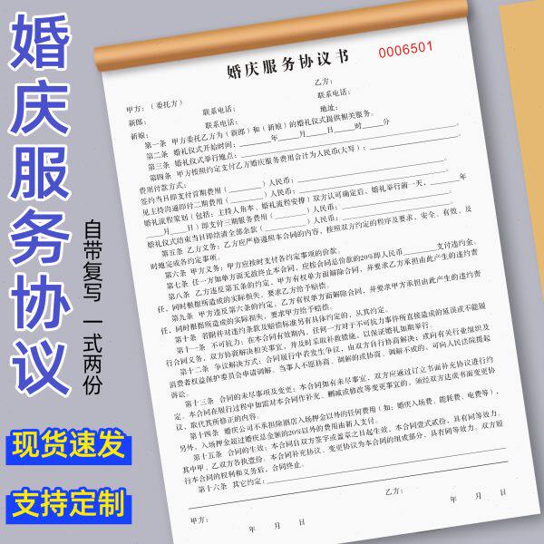婚礼宴会合同押金收据婚庆订单本婚庆协议婚纱服务婚车租赁合同单