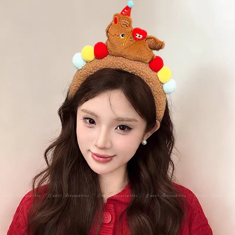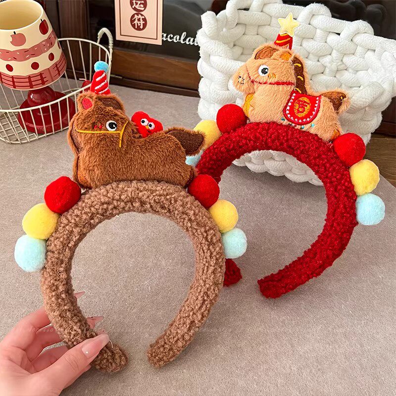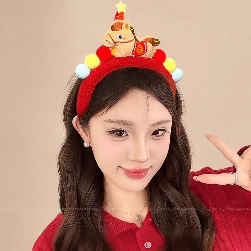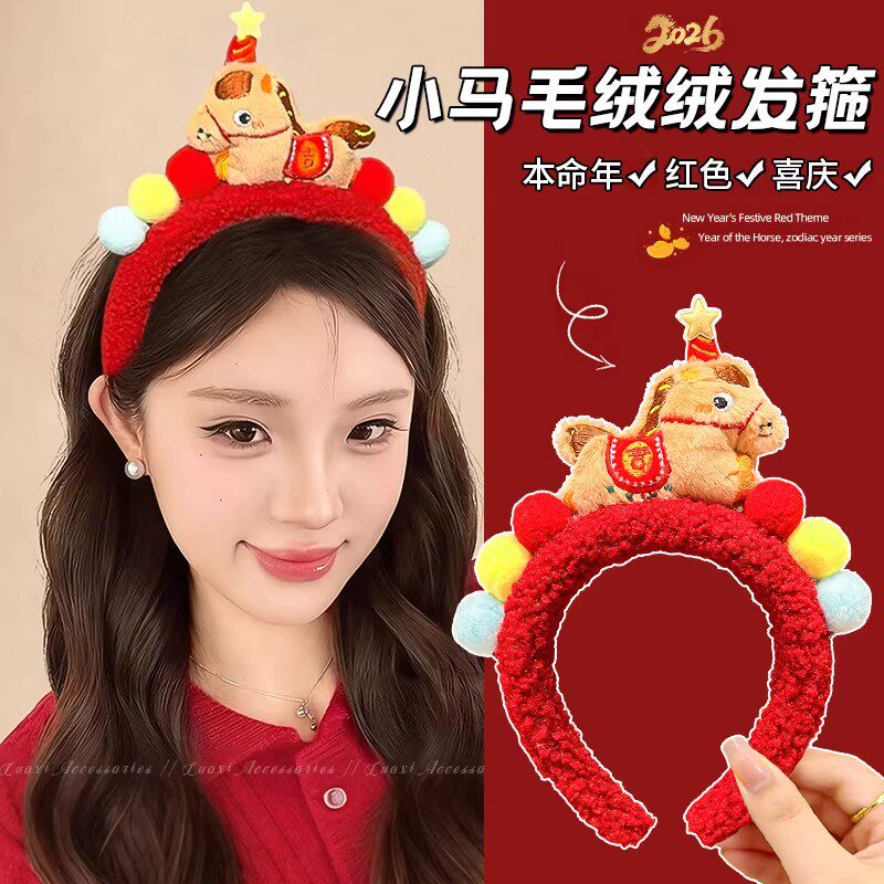 可爱红色小马毛绒发箍女2026新款洗脸头箍卖萌搞怪拍照头饰发饰