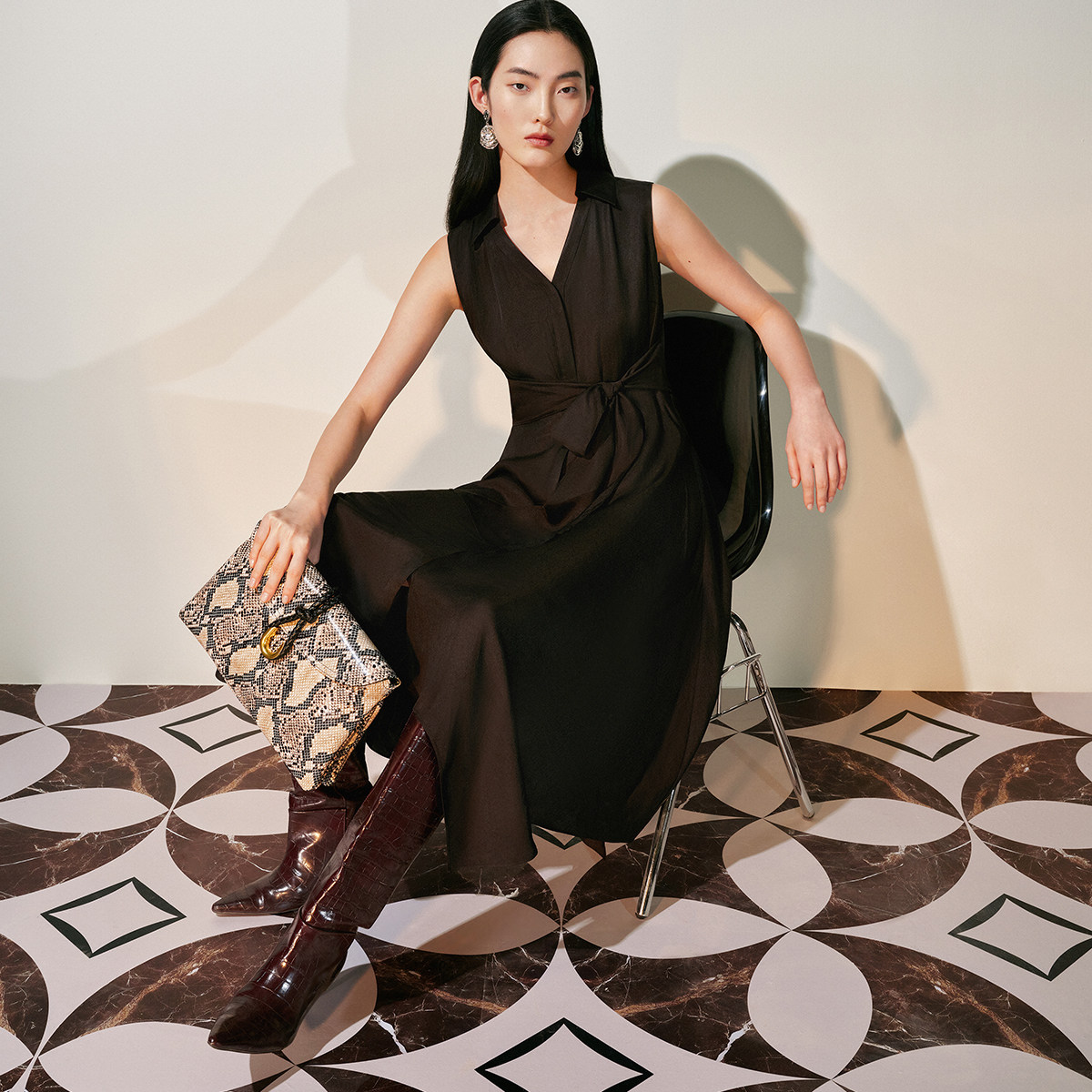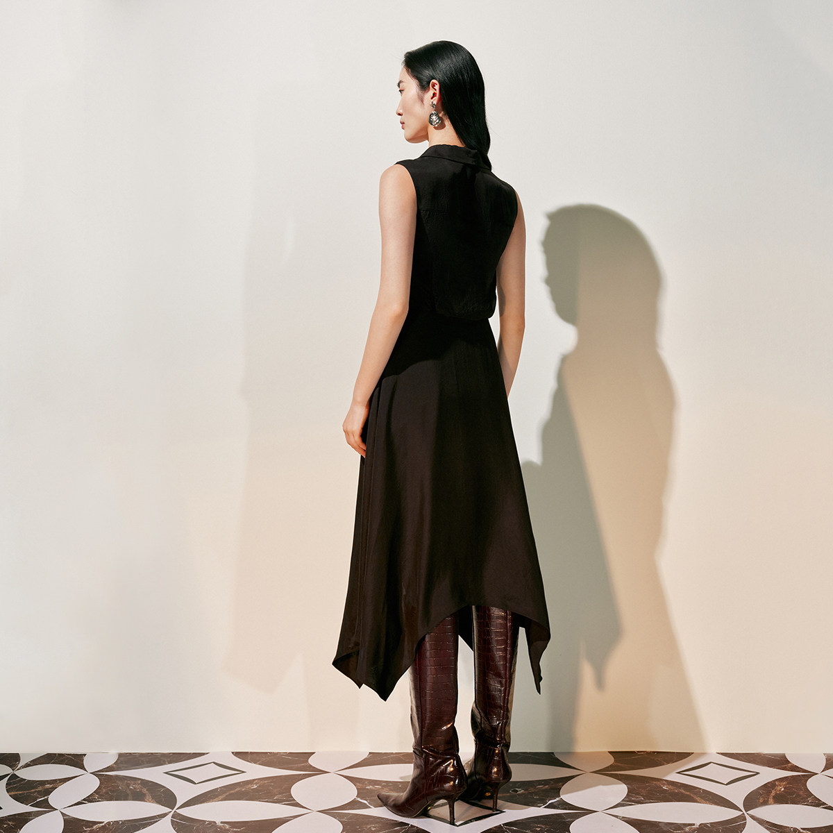 Vero Moda连衣裙2025春季新款醋纤单排扣系带不规则下摆32527A008