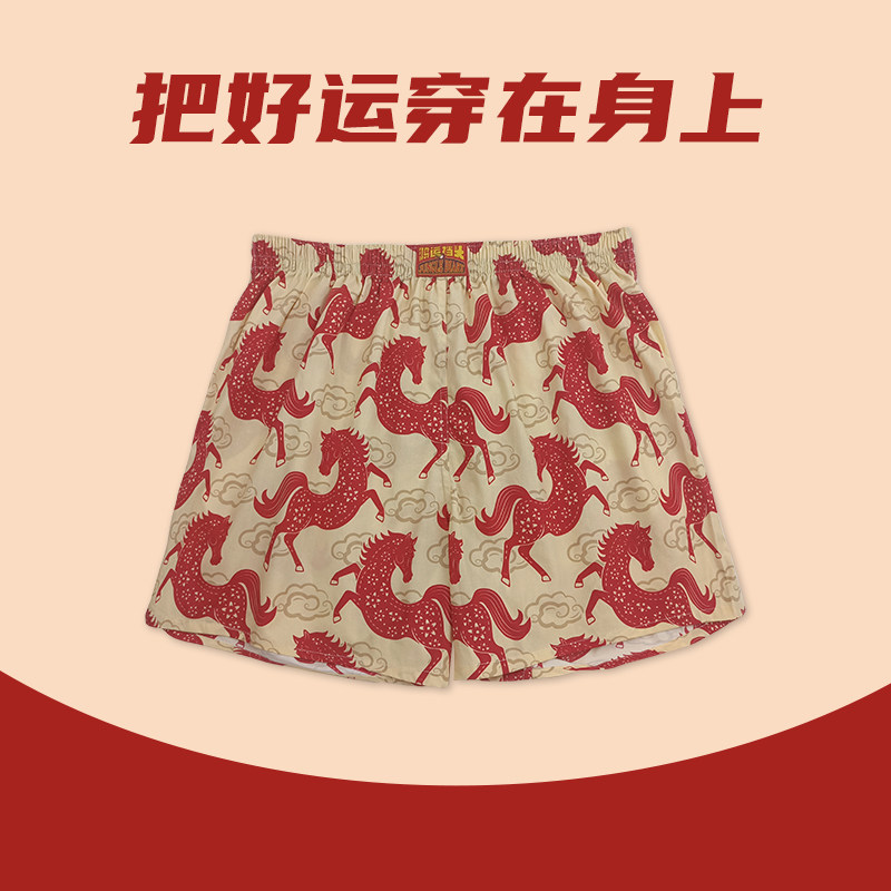 马年本命年红色阿罗裤男士内裤纯棉平四角短底裤宽松女结婚孖烟通