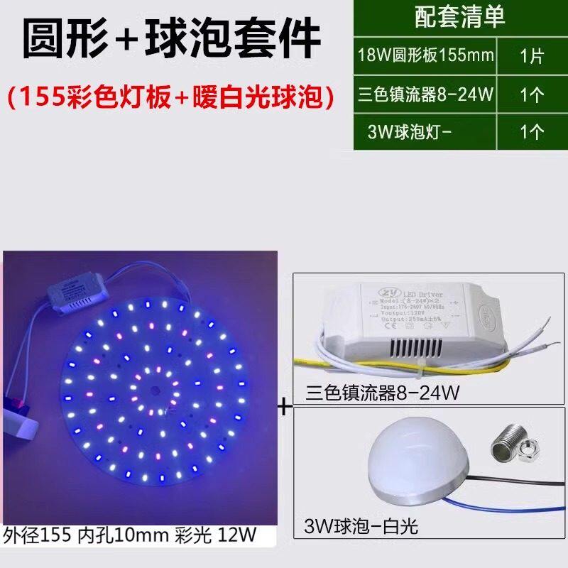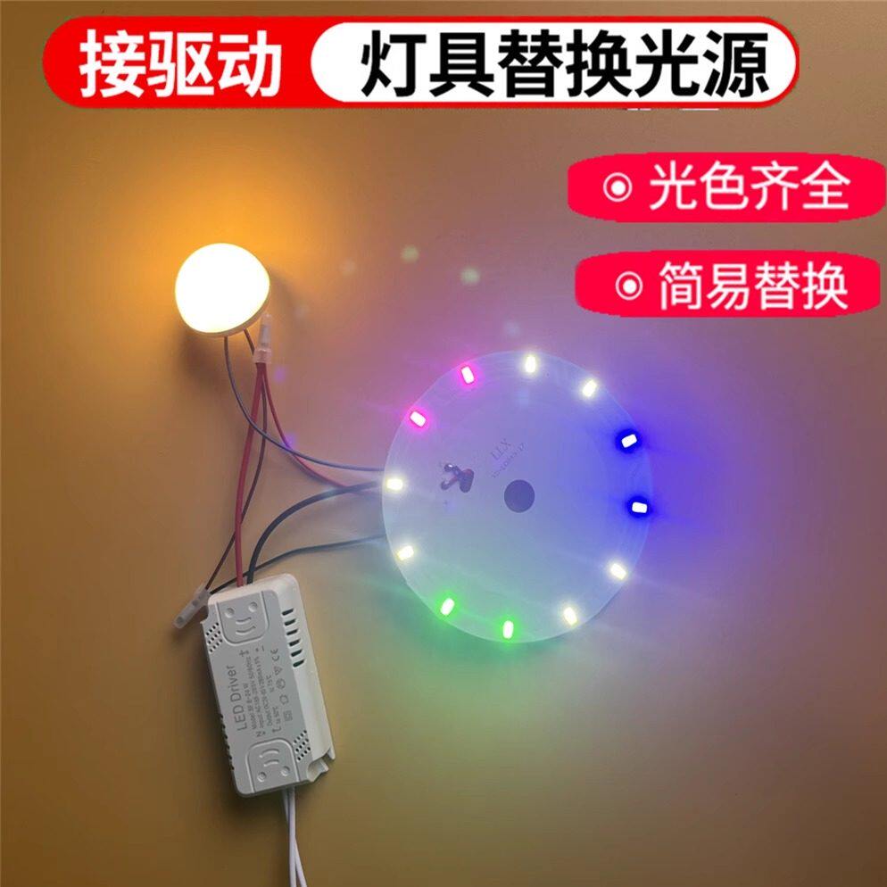 led灯盘吸顶灯灯芯磁铁吸圆盘灯泡替换客厅卧室三色灯板改造模组