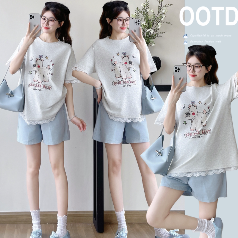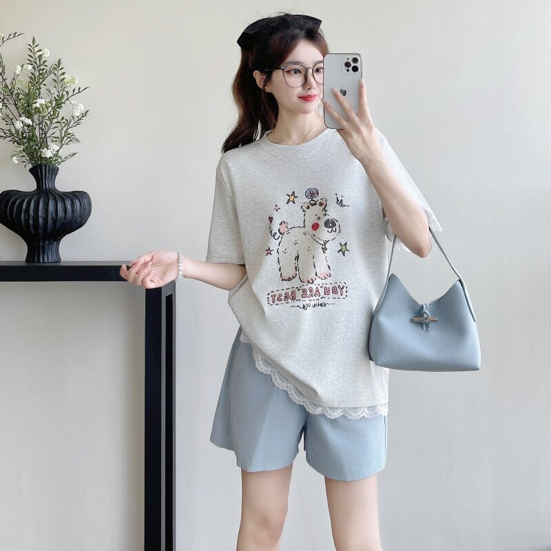 婧麒孕妇装夏季上衣孕妇t恤小个子洋气穿搭夏装短袖孕妇宽松上衣