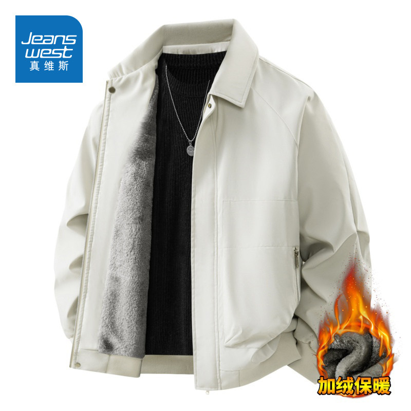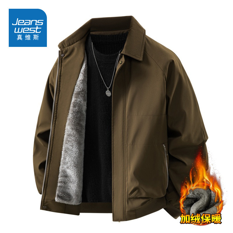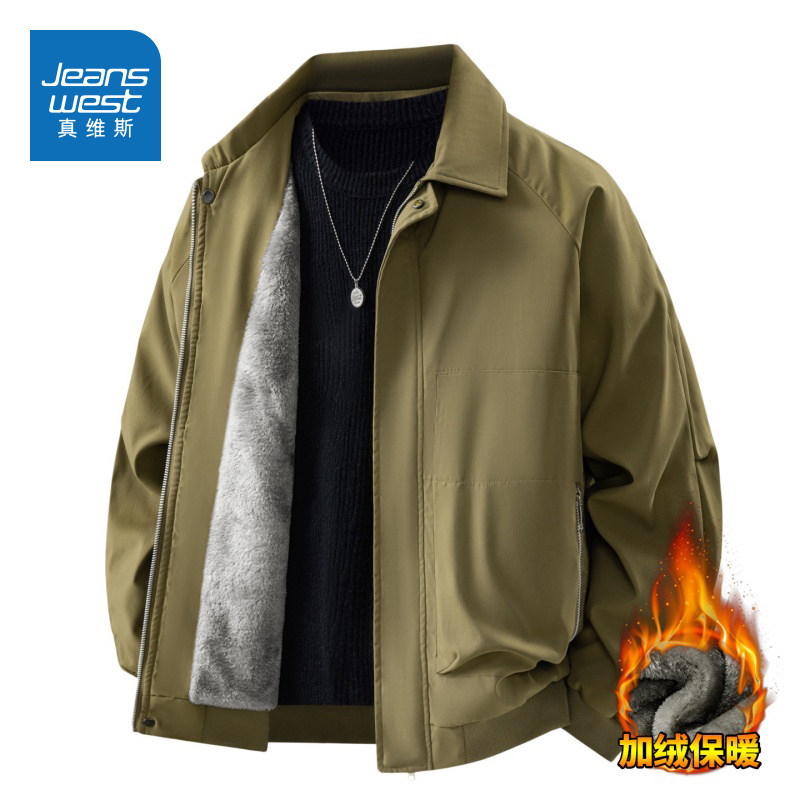 N5真维斯加绒外套男2025新款秋冬季美式潮牌男装加厚保暖翻领夹克