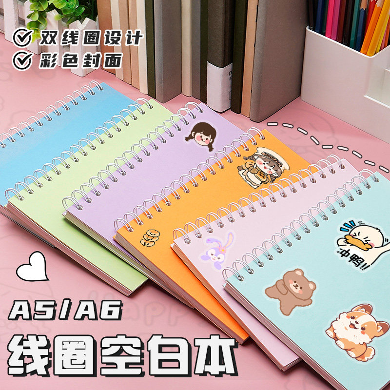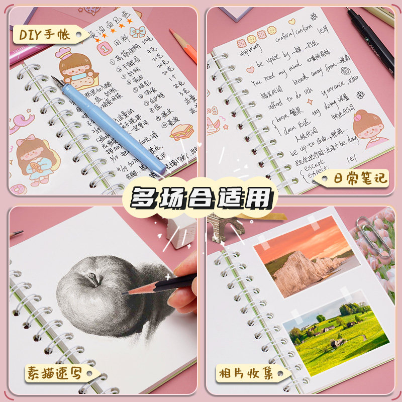 线圈A6空白本速写本画画本笔记本子手帐本高颜值A5绘画加厚旅行本印章口袋本立体书写字记事无格无线道林纸