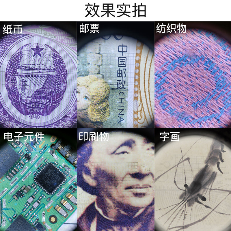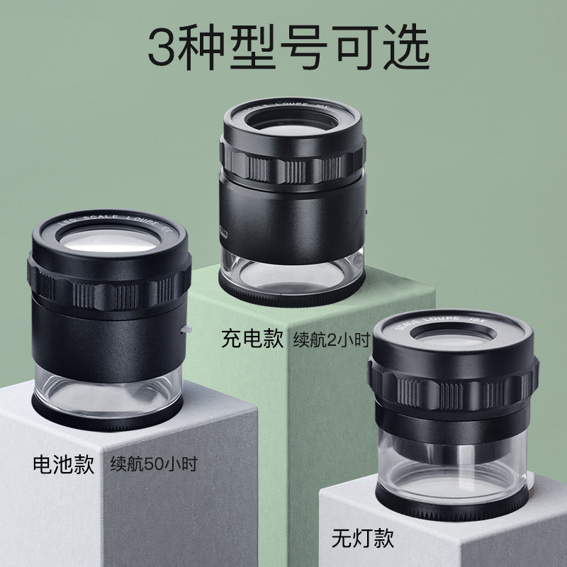 十倍放大镜老人阅读高清高倍鉴定专用带LED灯手机维修用电路10倍工业测量分划板便携式儿童显微镜方大镜1000