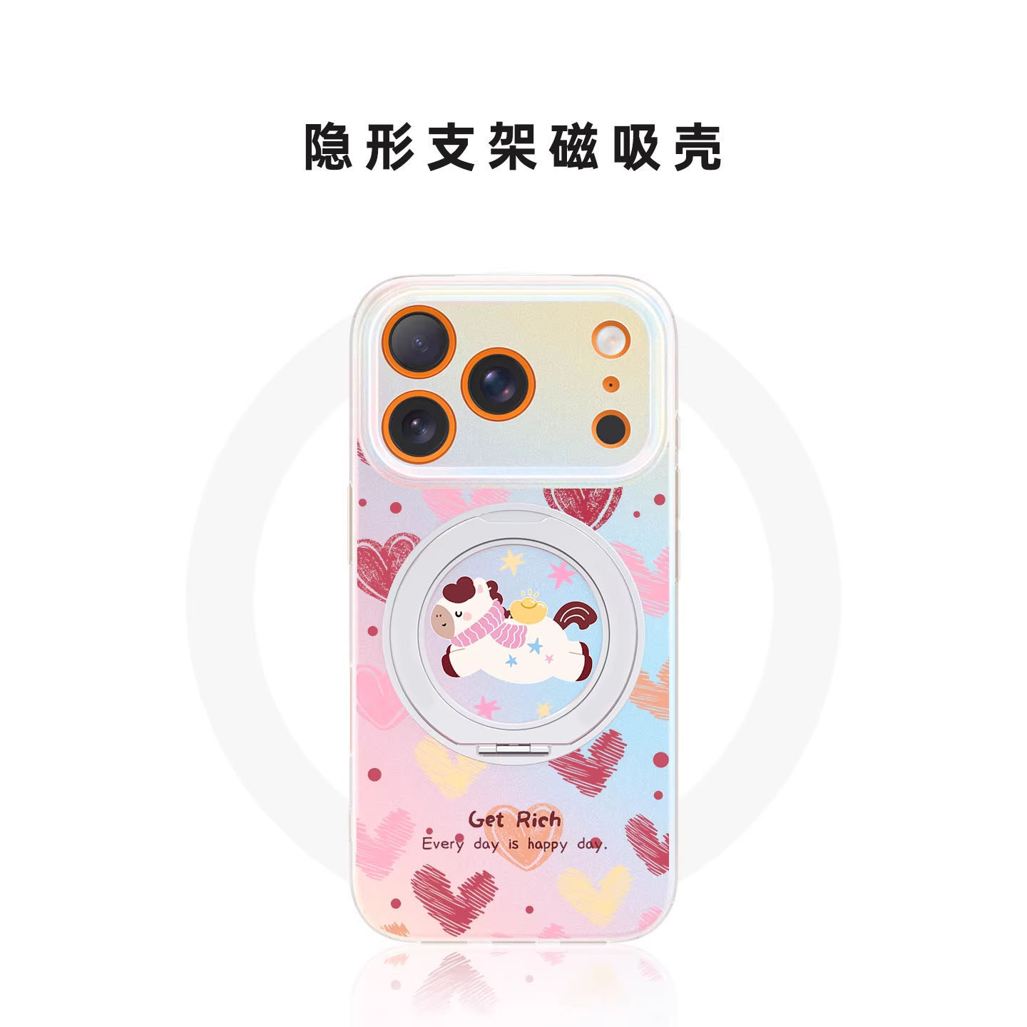 顺风顺水适用iphone17pro手机壳苹果16promax本命年马年新款15pm卡通小马独特好看14plus磁吸支架全包13镭射
