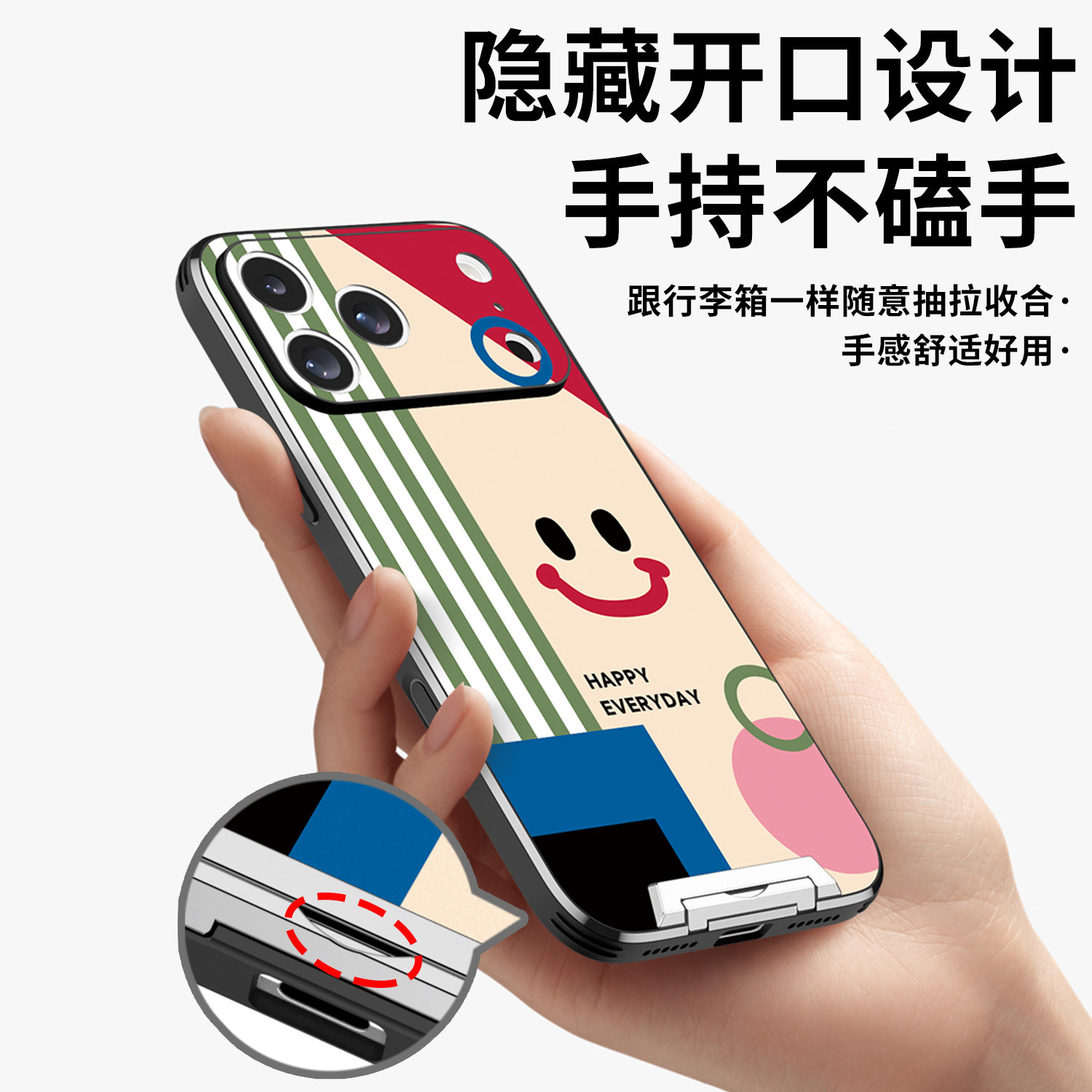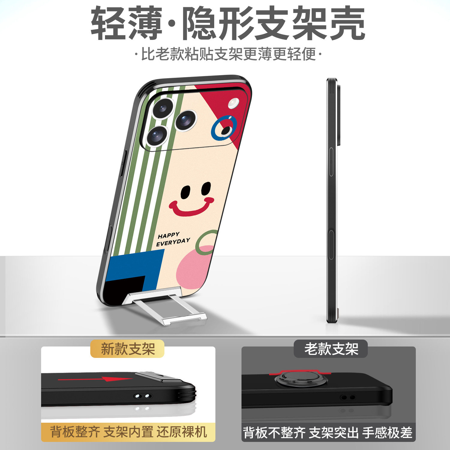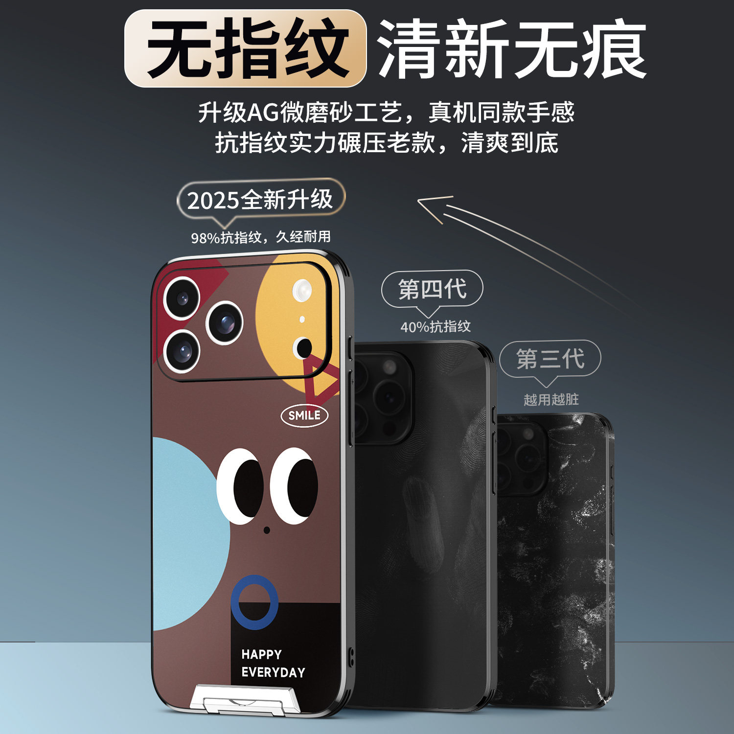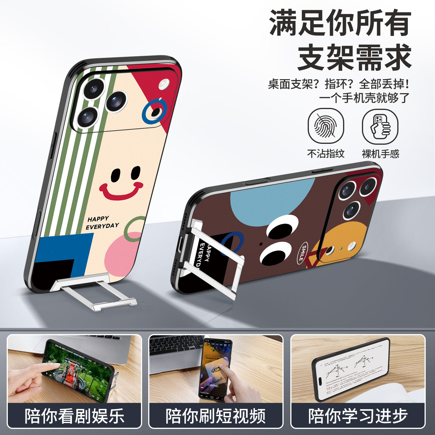 涂鸦笑脸适用苹果17手机壳iPhone17隐形拉杆pro带支架外壳ip16promax磨砂新款16镜头全包超薄防摔保护套情侣