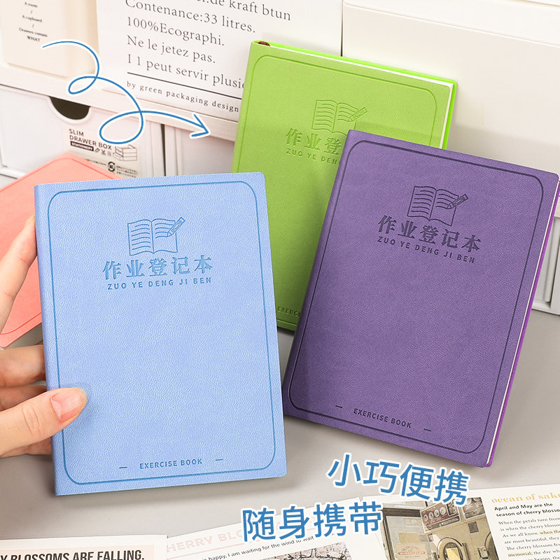 皮面作业登记本小学生专用A5笔记本一年级初中生小本子记作业记录本高颜值开学必备文具本子课堂记事本备忘录
