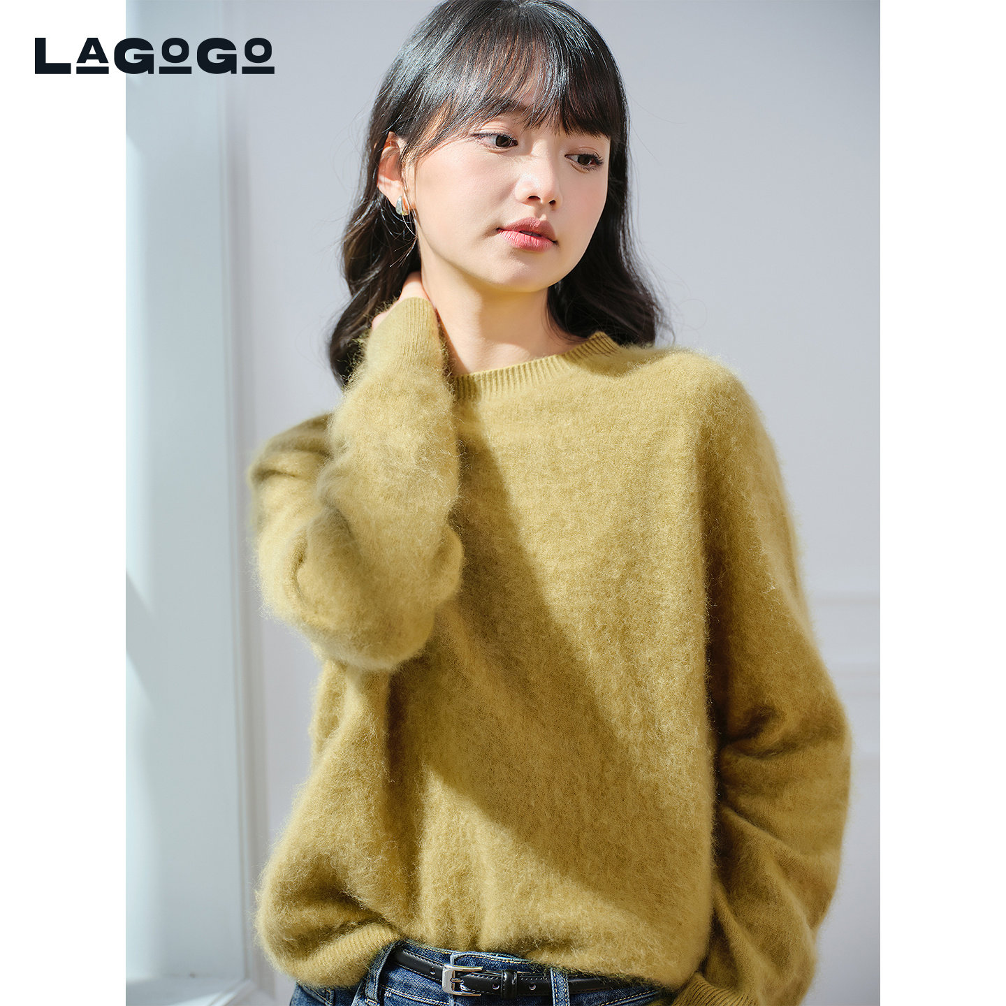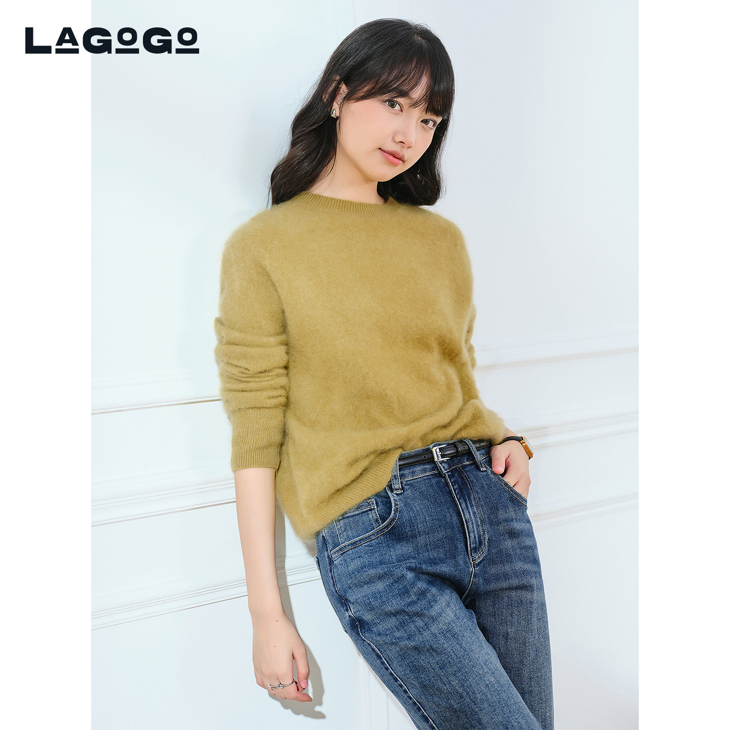 LAGOGO轻奢简约针织衫女拉谷谷2025冬新款含山羊绒打底OCMM43XD10