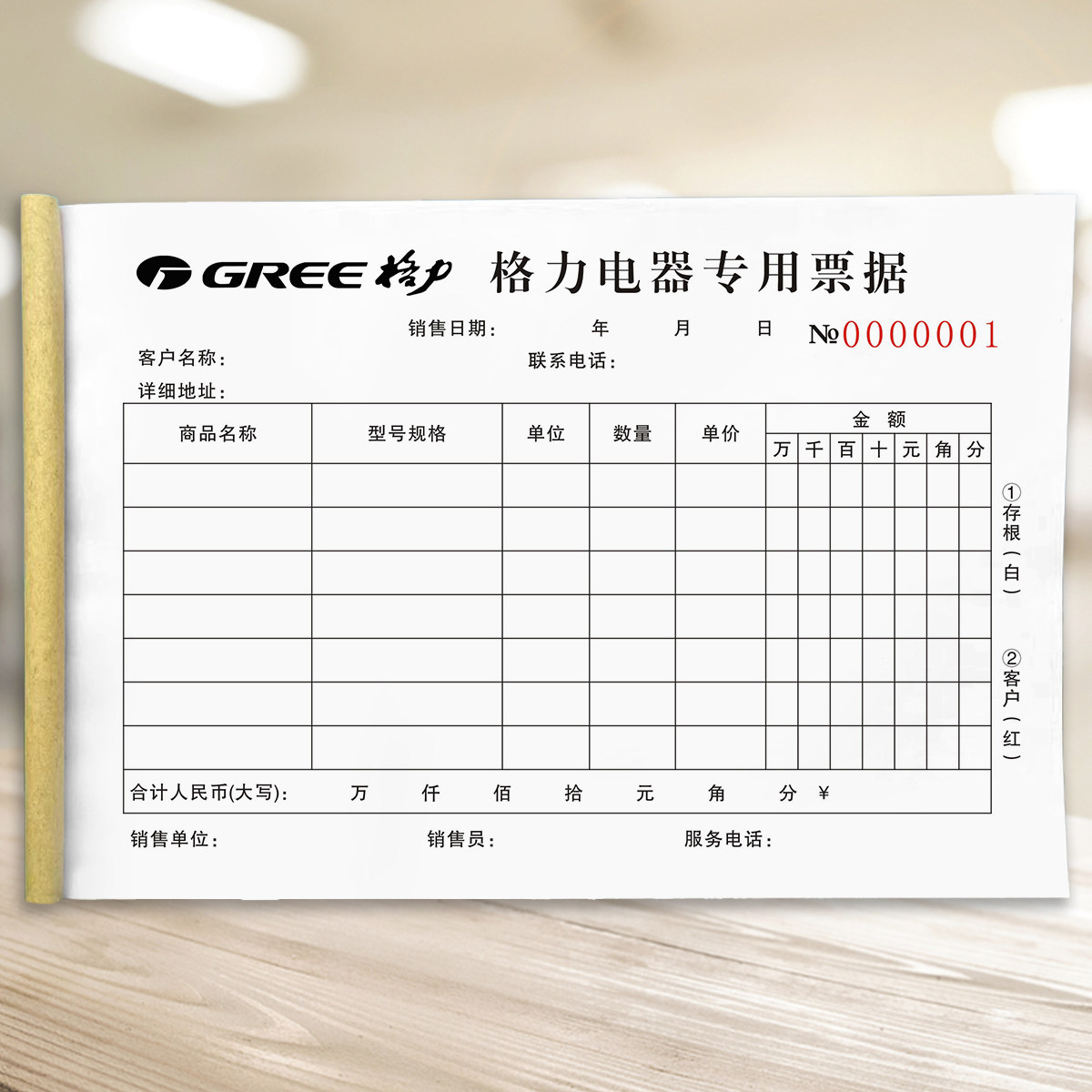 2本包邮通用格力电器销售专用票据二联销售保修凭证售后服务收据空调冰箱洗衣机家电收据售后维修凭证定制